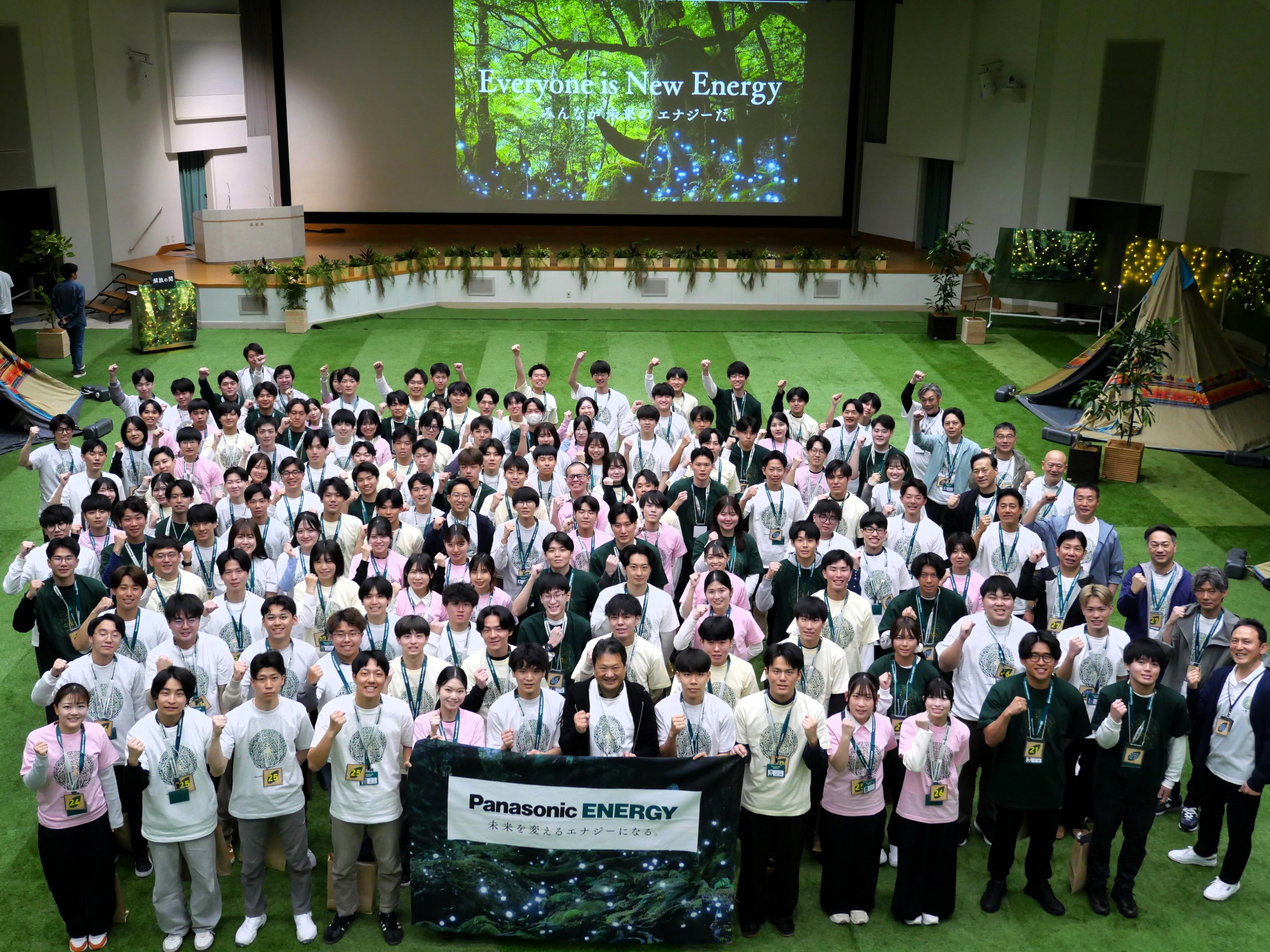 パナソニック エナジー株式会社(以下、パナソニック エナジー)は、本日、2026年4月1日、2026年度定期採用の新入社員139名を対象とした入社式(ウェルカムセレモニー)を実施しました。2026年度は、パナソニック エナジー初の試みとして、入社1~2年の若手社員の公募プロジェクトにより入社式を企画。森の中のキャンプ場に見立てて人工芝生やテントを張った会場に、アウトドアをイメージした服装で参加するなど、従来の入社式とは大きく異なる構成としました。
