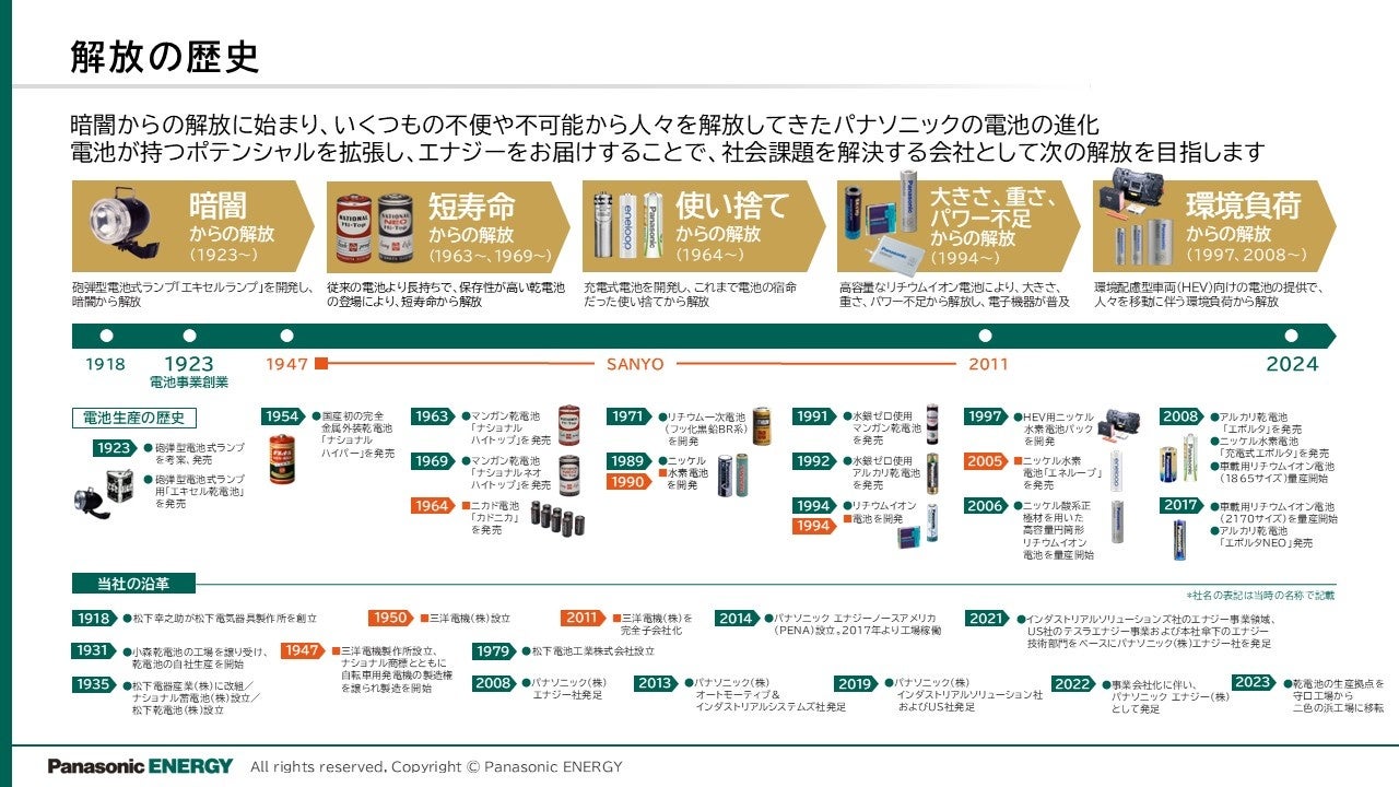本ゲームは、暗闇の会場内で明かりを灯しながら、パナソニック エナジー事業に関する謎を解き進める体験型ゲームです。パナソニック エナジーは約100年間にわたり、電池関連の製品を通して人々をくらしの不便さや社会課題から解放することに貢献してきました。この「解放の歴史( https://www.panasonic.com/jp/energy/company/philosophy.html )」の原点でもある、1923年に発売した自転車用の砲弾型電池式ランプで真っ暗な夜道を照らし人々を暗闇から解放した事業史をモチーフに、パナソニック エナジー製LEDライト「でかランタン( https://panasonic.jp/flashlight/big-lantern.html )」を使いながら、明かりを頼りに謎を解く演出などもありました。