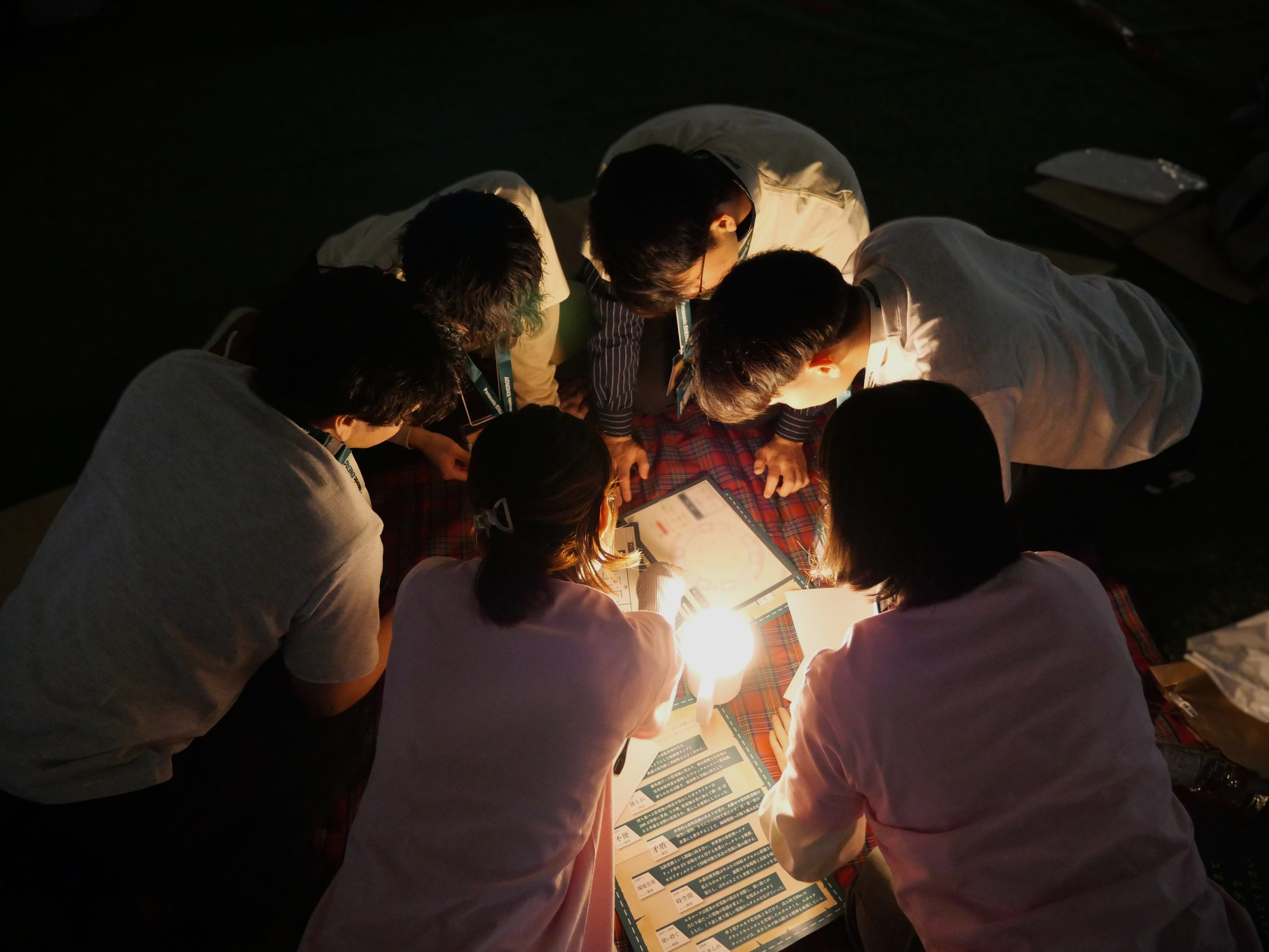 メインイベントとして、パナソニック エナジーが取り組む事業への理解を深めながらチームビルディングを行う体験型ゲーム「暗闇謎解き」を実施しました。暗闇の会場内で明かりを灯しながら謎を解き進める形式のゲームでは、経営幹部も参加し、知り合って間もない新入社員同士で協力しながら課題に向き合う体験を通じて、交流を深めるとともに、パナソニック エナジーの事業背景や社会的意義への理解を深める機会となりました。