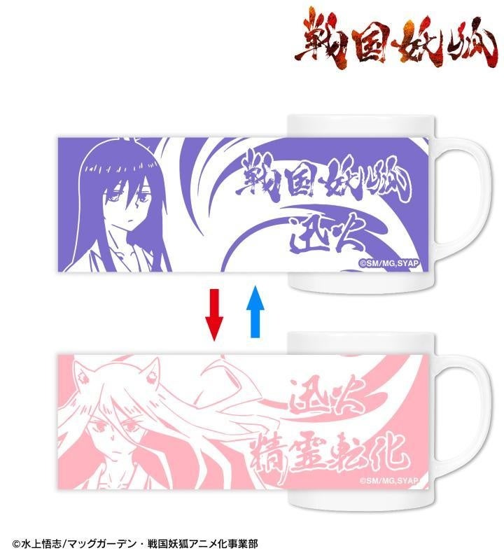 温度に反応する特殊なインクを使用しており、マグカップに温かい飲み物を入れると、迅火のイラストから迅火 精霊転化のイラストに変化します。