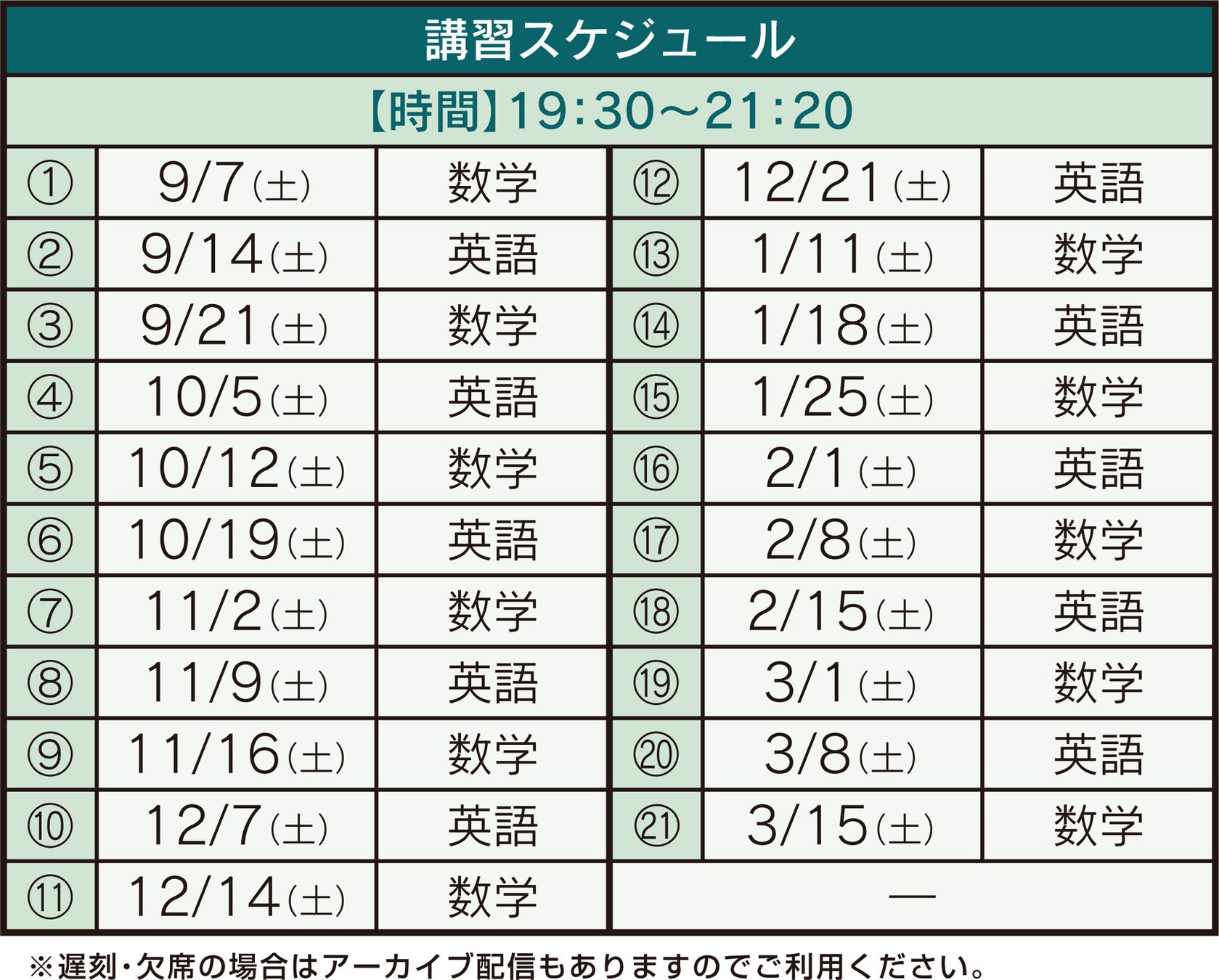 日時 9月7日(土)初回授業開始 19:30~21:20