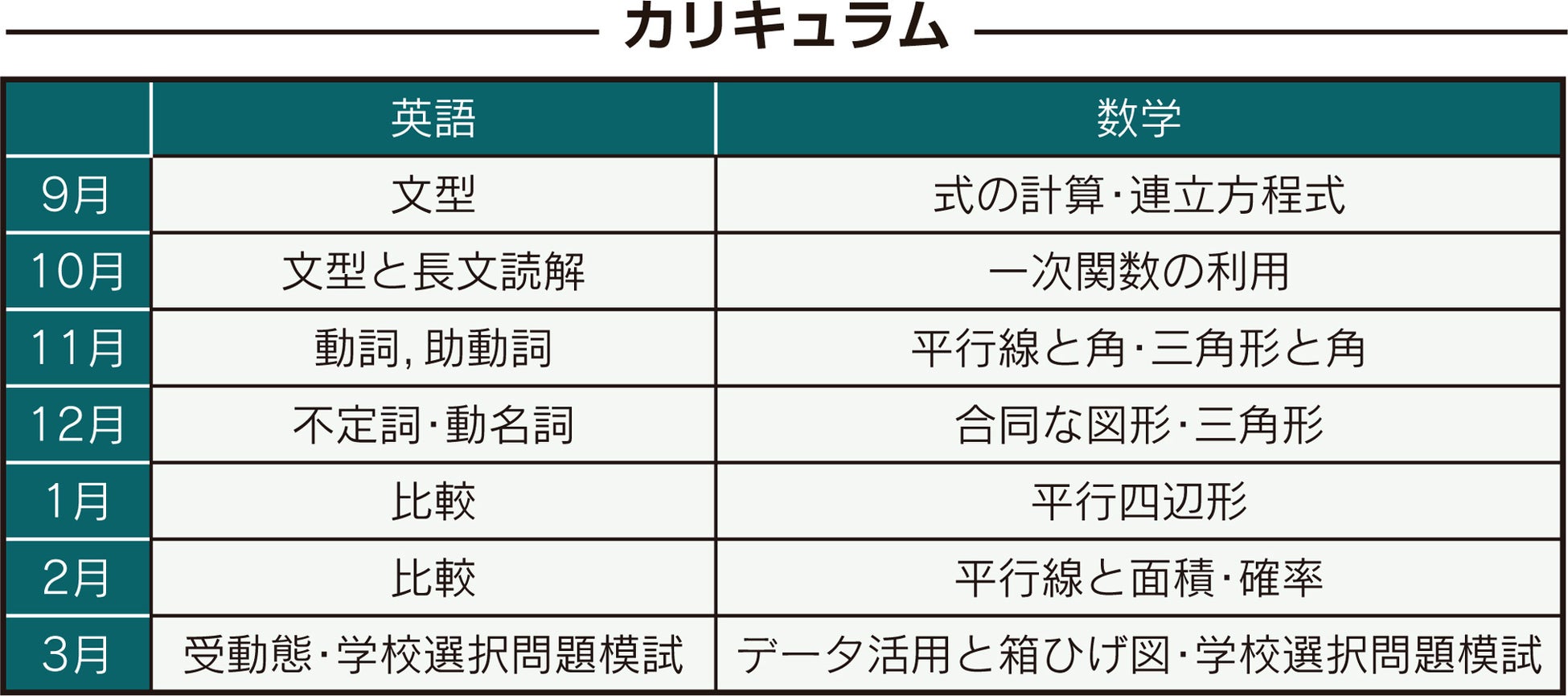 「トップ校合格講座」は、埼玉県の学校選択問題採択校を目指すライバルに差をつけるための特別講座です。中2生のうちから、トップ校の入試問題レベル(=学校選択問題レベル)の数学・英語をテーマ別に扱い、実力を身につけます。