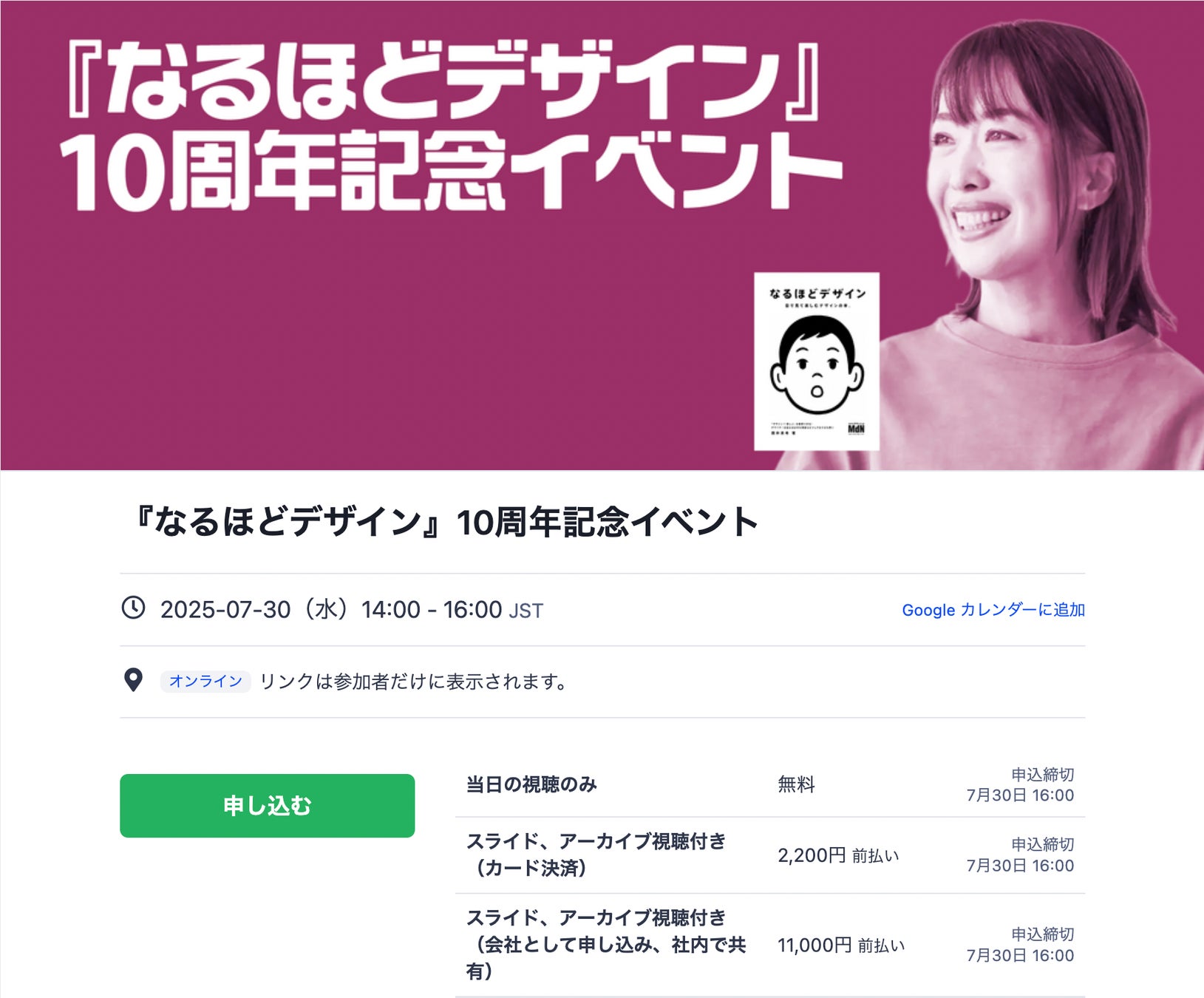 さらに『なるほどデザイン』10周年記念イベントの開催も決定。著者の筒井美希さんによるトークイベントをYouTube Liveでライブ配信いたします。
