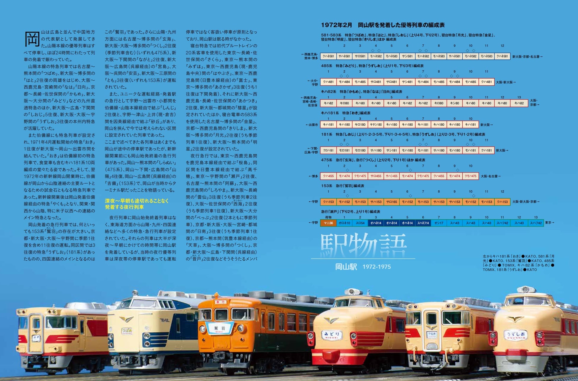 本誌Vol.138のリニューアル号から始まった第2特集「駅物語」は、これまでになかった切り口でご好評をいただいています。4回目となる今回は「岡山駅1972-1975」。1972年3月に山陽新幹線が新大阪~岡山間で開業し、岡山駅は西への結節点として数多くの特急が設定されました。
