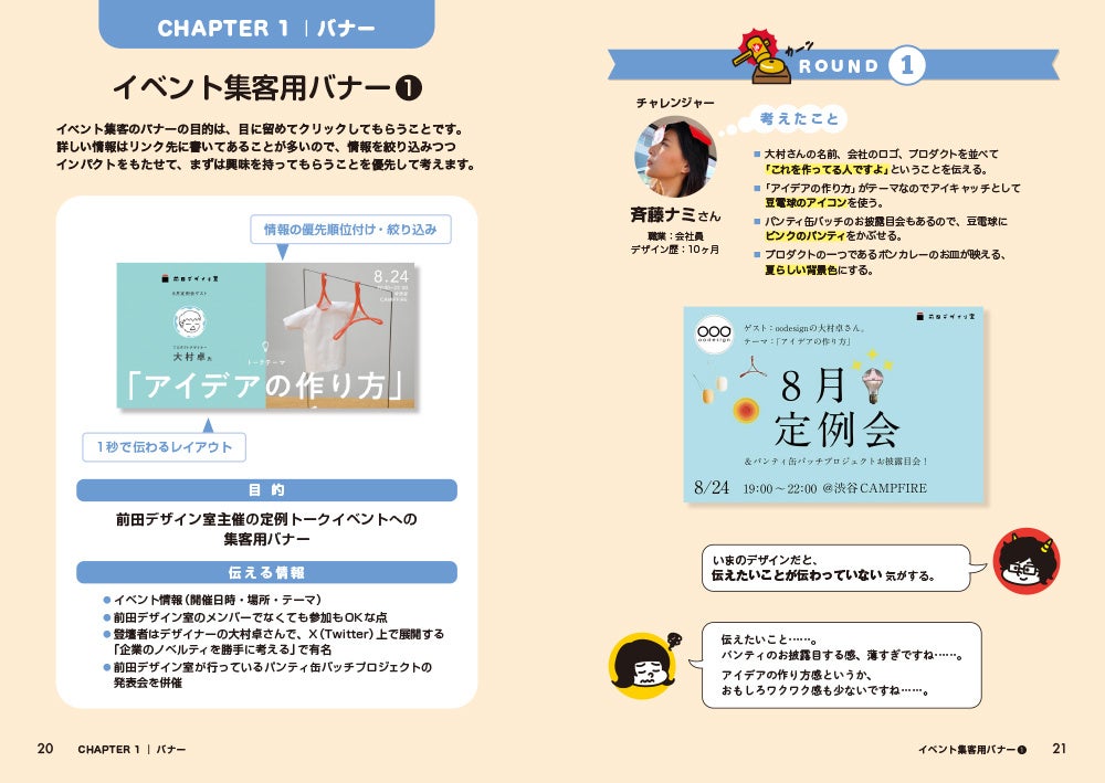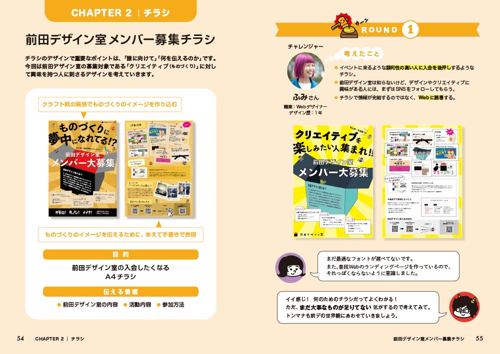 本書は、チャレンジャーのデザイン案に対し、クリエイティブディレクター/デザイナーの前田高志がディレクターとしてフィードバックしながら、チャレンジャーと“ともに作り上げていく”プロセスを収めた一冊です。