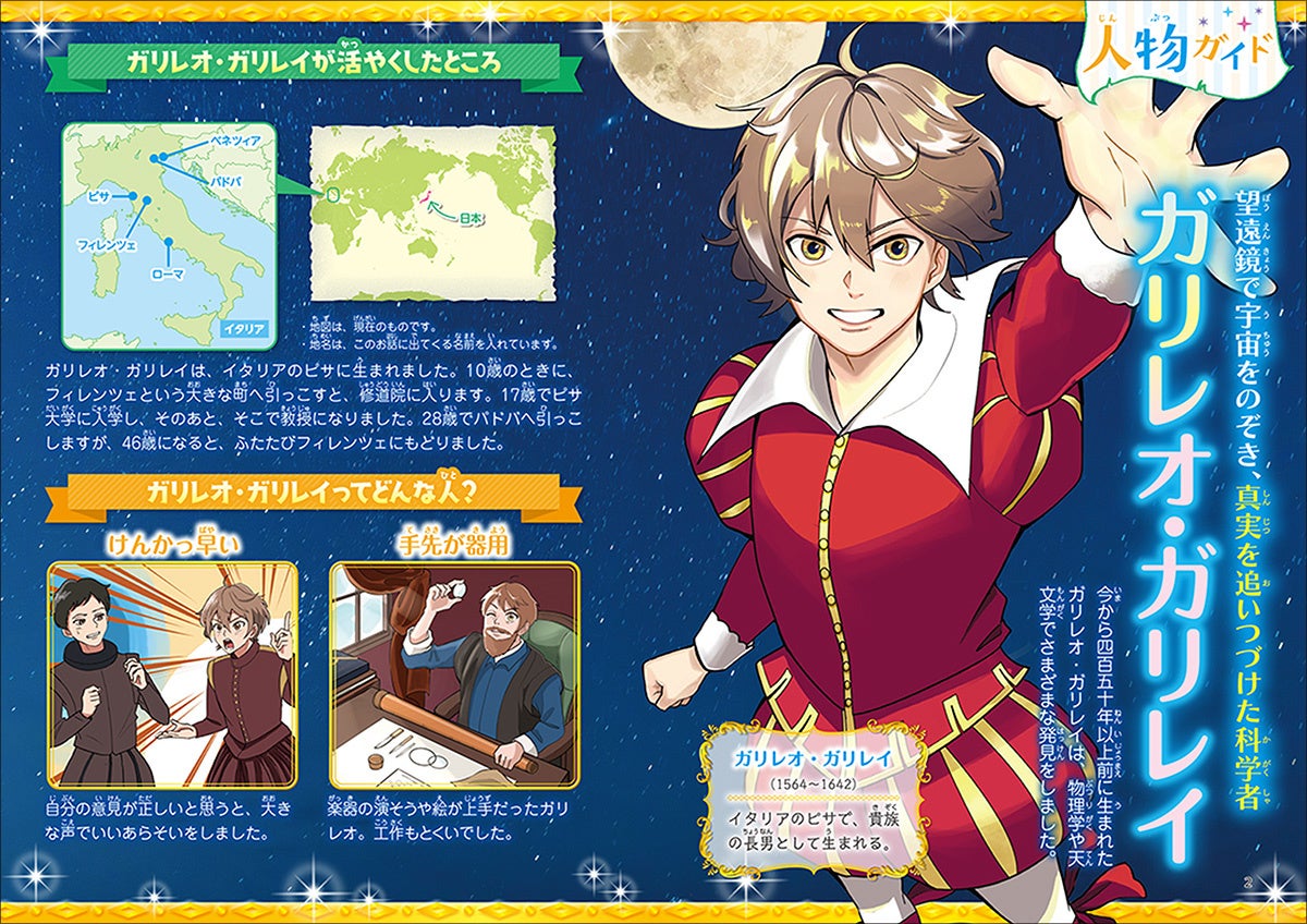 望遠鏡で宇宙を見た「ガリレオ・ガリレイ」の人生とは! 小学校低学年から楽しく読める伝記読み物が発売!