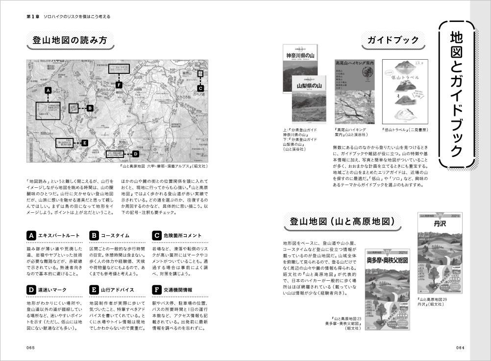 冒頭のマンガ編では、登山にまつわる“失敗あるある”や、ソロハイクの最初の一歩を踏み出すための心得、最初に揃えるべき山道具の基礎知識を、小川こうじ氏の描き下ろしマンガで紹介。続く解説編では、ソロハイクのリスク、登山用具の基礎知識、ソロハイクをより深く楽しむためのテーマなど、さまざまなノウハウを紹介します。