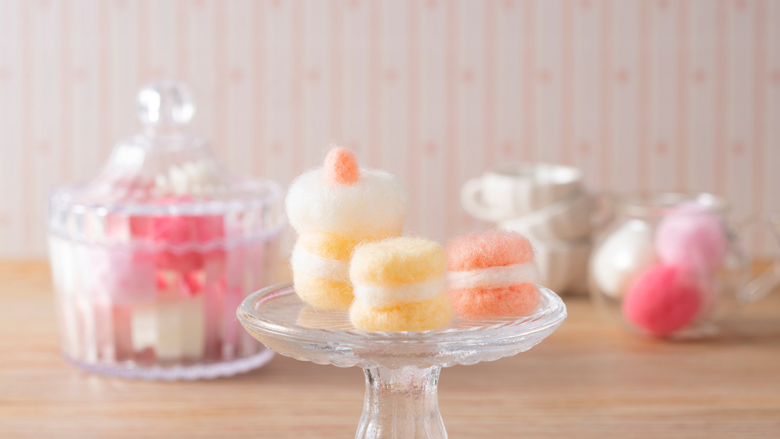 「羊毛フェルト手芸」の材料キットは従来からありましたが、針を使うため、「16歳以上」という商品が多い中、子ども向け企画として本書が登場。それは「手を動かして何かを生み出す、手芸の楽しさを、子どもたちにもっと広げたい」という著者と編集者の願いから実現しました。まずは、子どもたちに興味を持ってもらうため、かわいくて、簡単に作れるキャラクター・にゃんころを、はっとりみどりさんが考案、3匹の子猫の材料で、ほかにも「いちごケーキ」「マカロン」「チンアナゴ」「ハムスター」など、小学生が大好きなお菓子や動物を作成できるようにしました。