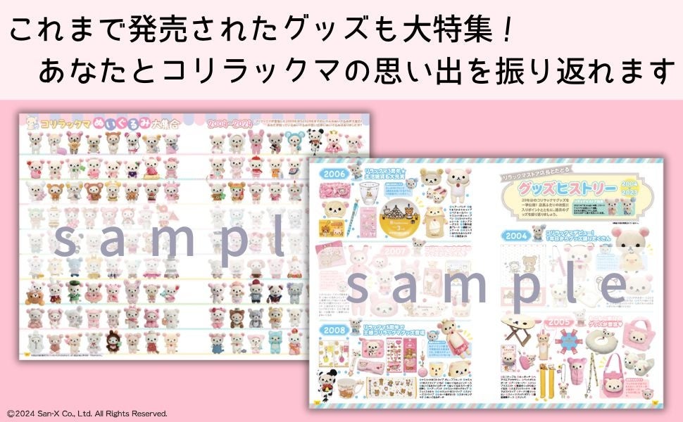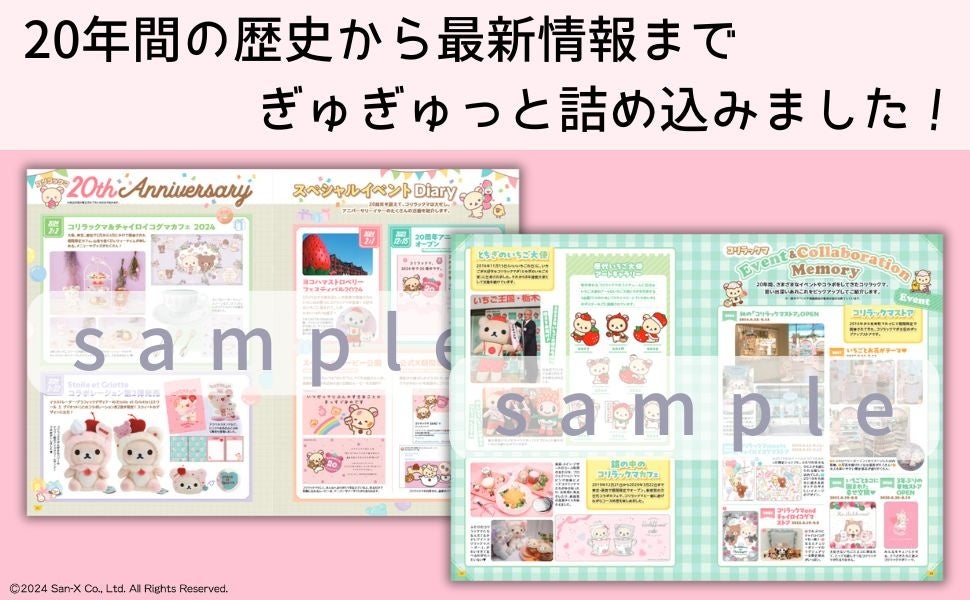 コリラックマのこれまでの活躍や発表されたテーマ、発売された思い出深いグッズなど……20年間の歴史をぎゅぎゅっとまとめて掲載しています。