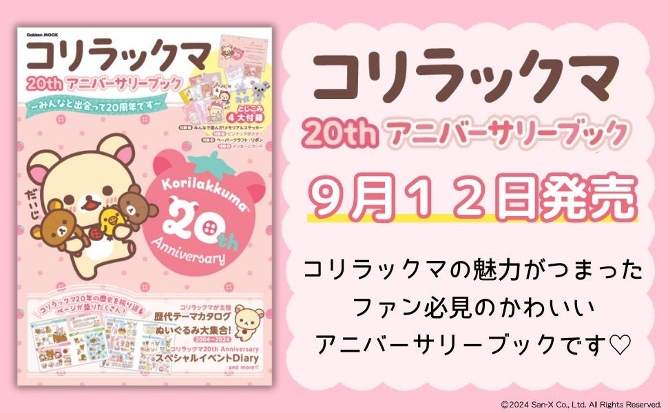株式会社 学研ホールディングス(東京・品川/代表取締役社長:宮原博昭)のグループ会社、株式会社 Gakken(東京・品川/代表取締役社長:五郎丸 徹)は、2024年9月12日(木)に『コリラックマ 20th アニバーサリーブック』を発売いたしました。