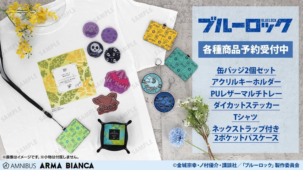 TVアニメ『ブルーロック』のモチーフ Tシャツ、モチーフ柄 ネックストラップ付き2ポケットパスケースなどの受注開始!アニメ・漫画のオリジナルグッズを販売する「AMNIBUS」にて