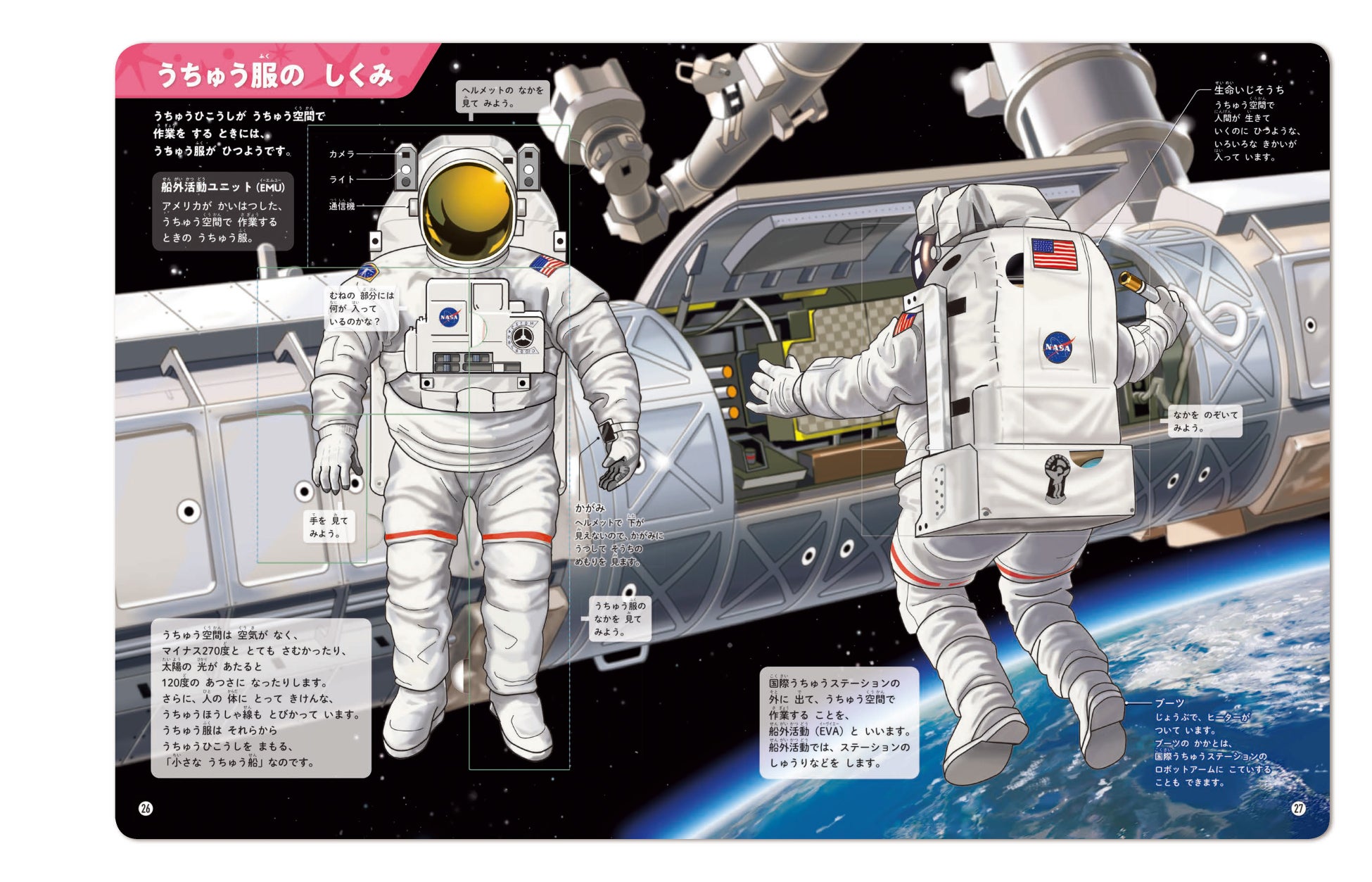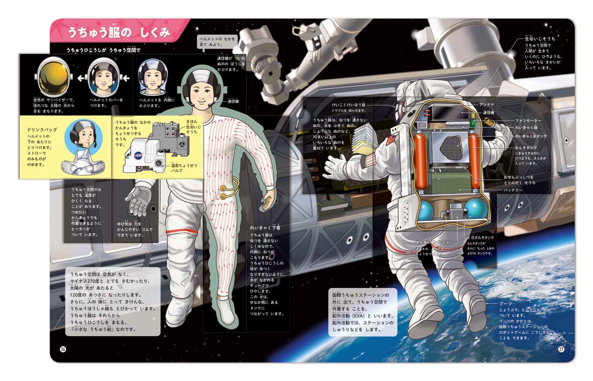 ロケット、国際宇宙ステーション、宇宙服などの「宇宙開発のしくみ」を、