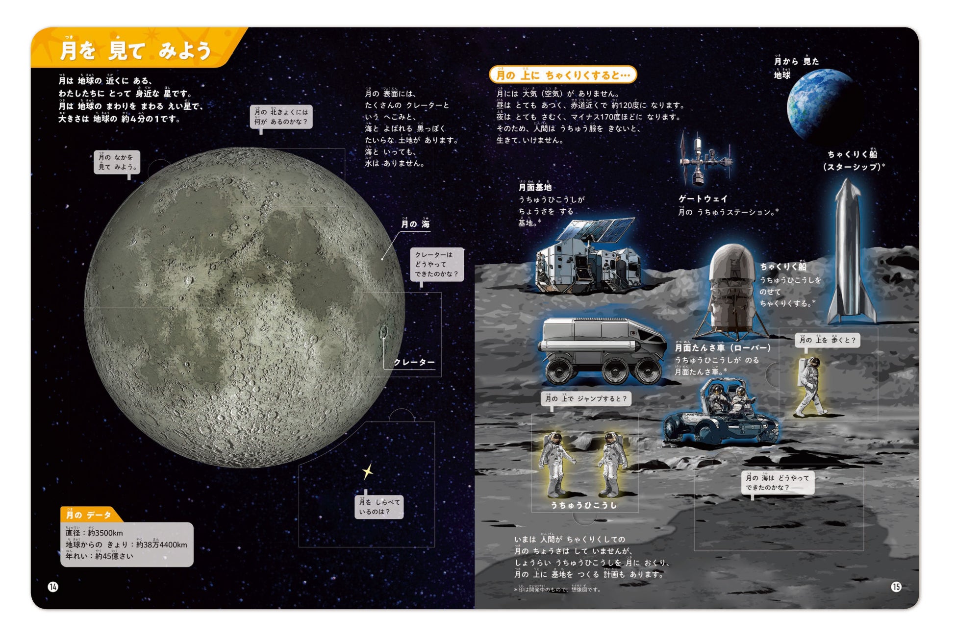 将来、宇宙がより身近になるかもしれない子どもたちへ、宇宙に興味をもつきっかけになるように願って本書を制作しました。
