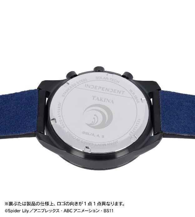 井ノ上たきなをイメージして、文字板、バンド裏にキャラクターカラーの青を配色し、時計全体で井ノ上たきなを彷彿とさせる1本に仕上げました。