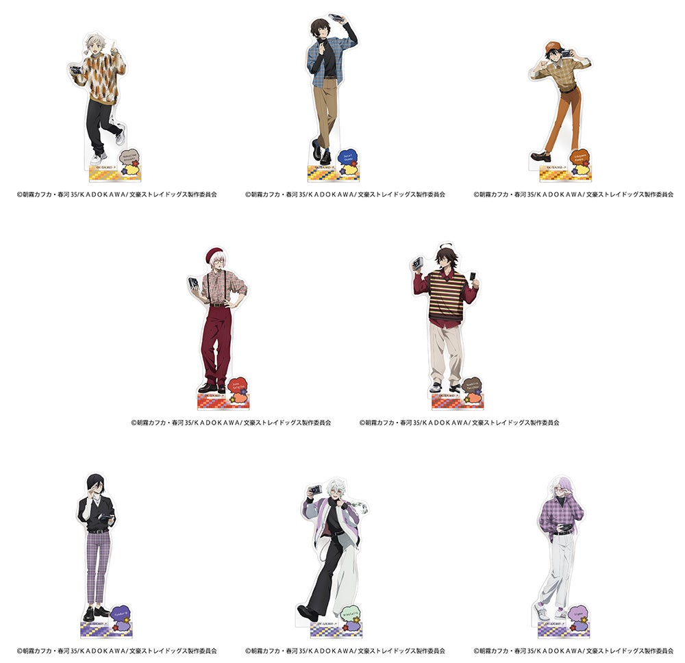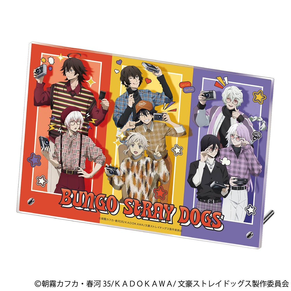 そんな本作より、「アクリルスタンド」や「キャラバッジコレクション」などの新商品が多数発売! 新商品には、中島敦や太宰治たちが「撮影会」をテーマにカメラを手にした描き下ろしイラストを使用しています。
