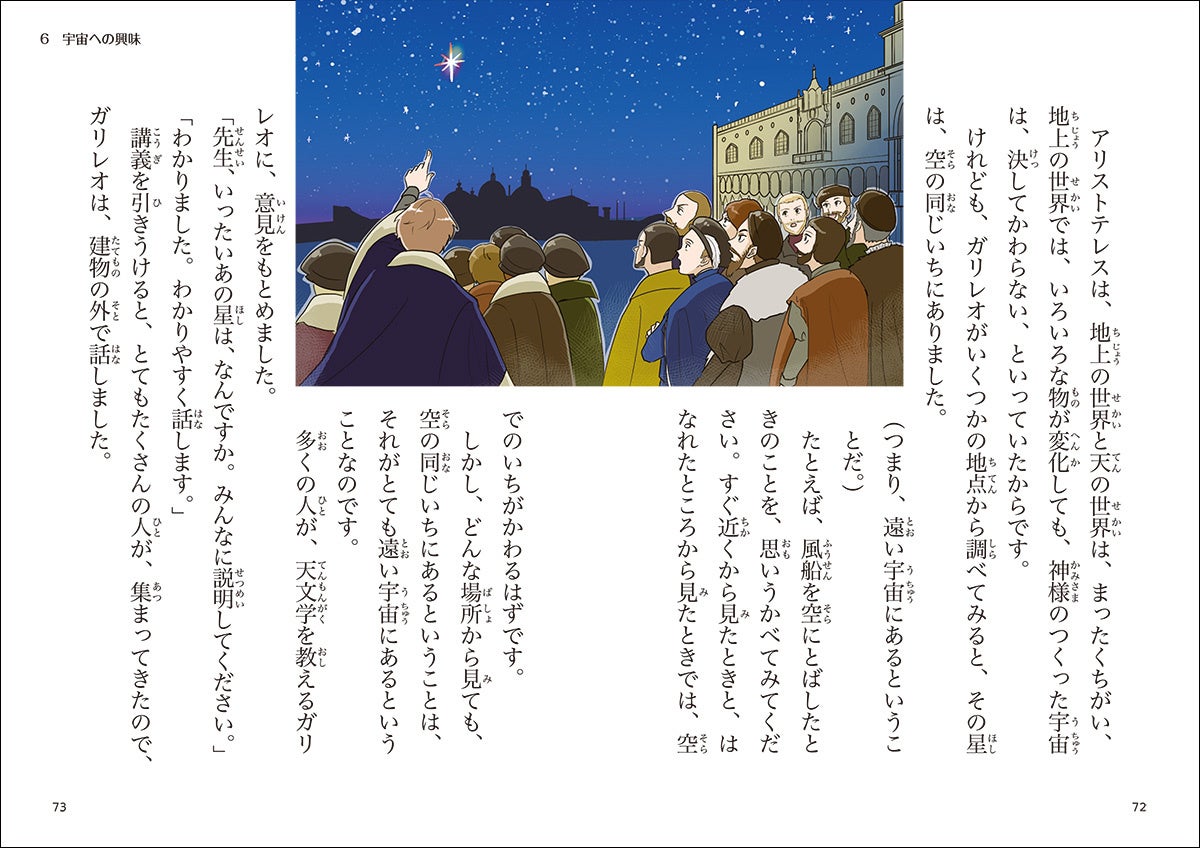 宇宙の星ぼしに魅せられたイタリアの科学者、ガリレオ・ガリレイは、物理学や天文学でさまざまな発見をします。天動説と地動説に向きあったガリレオは、のちに裁判にかけられますが、くじけず研究をつづけ、真実を追いもとめました。今では「近代科学の父」ともよばれるガリレオは、どのような人生を送ったのでしょうか。