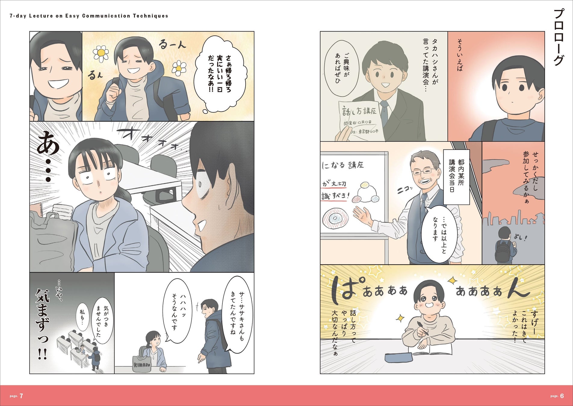 本書の主人公は、現実の生活でも話し方に悩んでいるマンガ家のゆーぱぱ氏と編集者のササキです。全7章、7日間の講義をとおして、ふたりと一緒に悩み、学ぶうちに、読者自身もプライベートはもちろんのこと、グループトーク、ビジネス、恋愛などあらゆる場面で役立つ話し方のコツを身に付けることができるようになります。