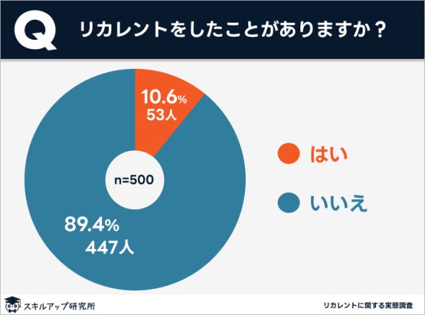 社会人500人に「リカレントをしたことがありますか?」という質問をした結果、「はい」と回答した人はわずか10.6%だった。