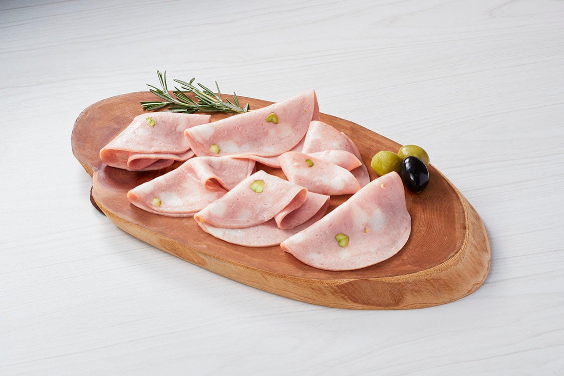 イタリア・ボローニャ発祥のソーセージ「モルタデッラ」をイメージしています。本場に合わせてピスタチオとカットした脂身を入れることで、彩りよく仕上げているのが特徴。スライス状なのでそのまま食べるだけでなく、サラダのトッピングやサンドイッチにもおすすめです。