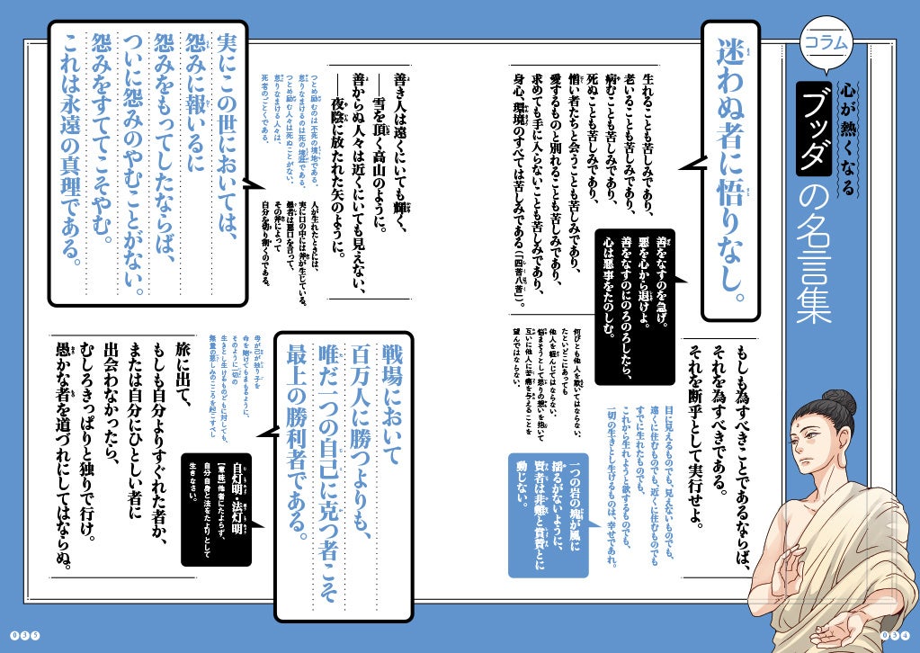 名言はマンガ内で取り上げられたもの以外も、コラムで多数紹介しています。人物、テーマごとにまとめられているので、マンガを読んで気になった人物や、自分が今興味のあるテーマについての名言を読むことができます。