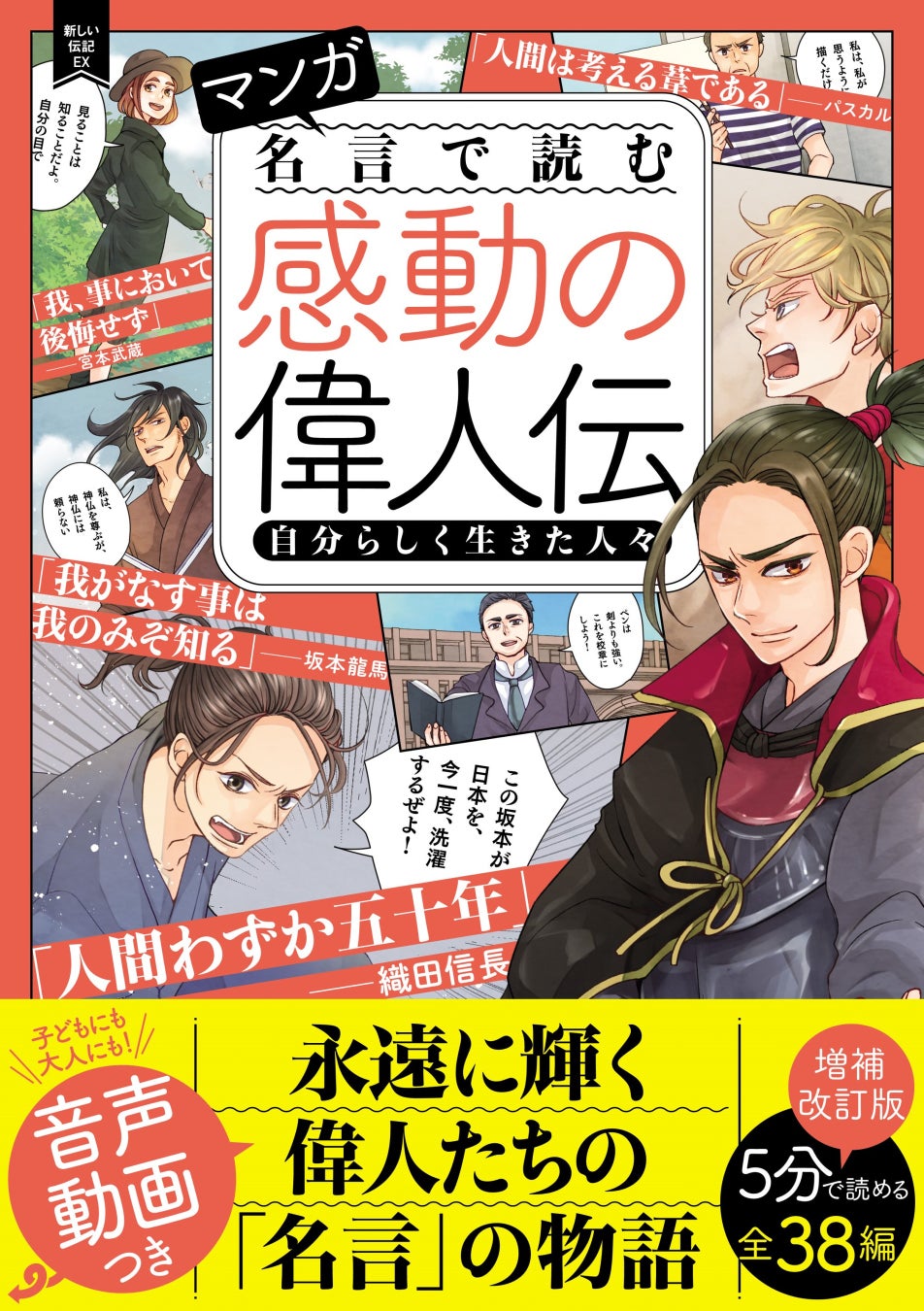 偉人や歴史人物たちの人生を、「名言」という新しい切り口で紹介。合計約80人分の伝記マンガを『マンガ 名言で読む感動の偉人伝 自分らしく生きた人々 増補改訂版』、『マンガ 名言で読む感動の偉人伝 愛と勇気にあふれた人々 増補改訂版』の2冊に分けて収録しました。