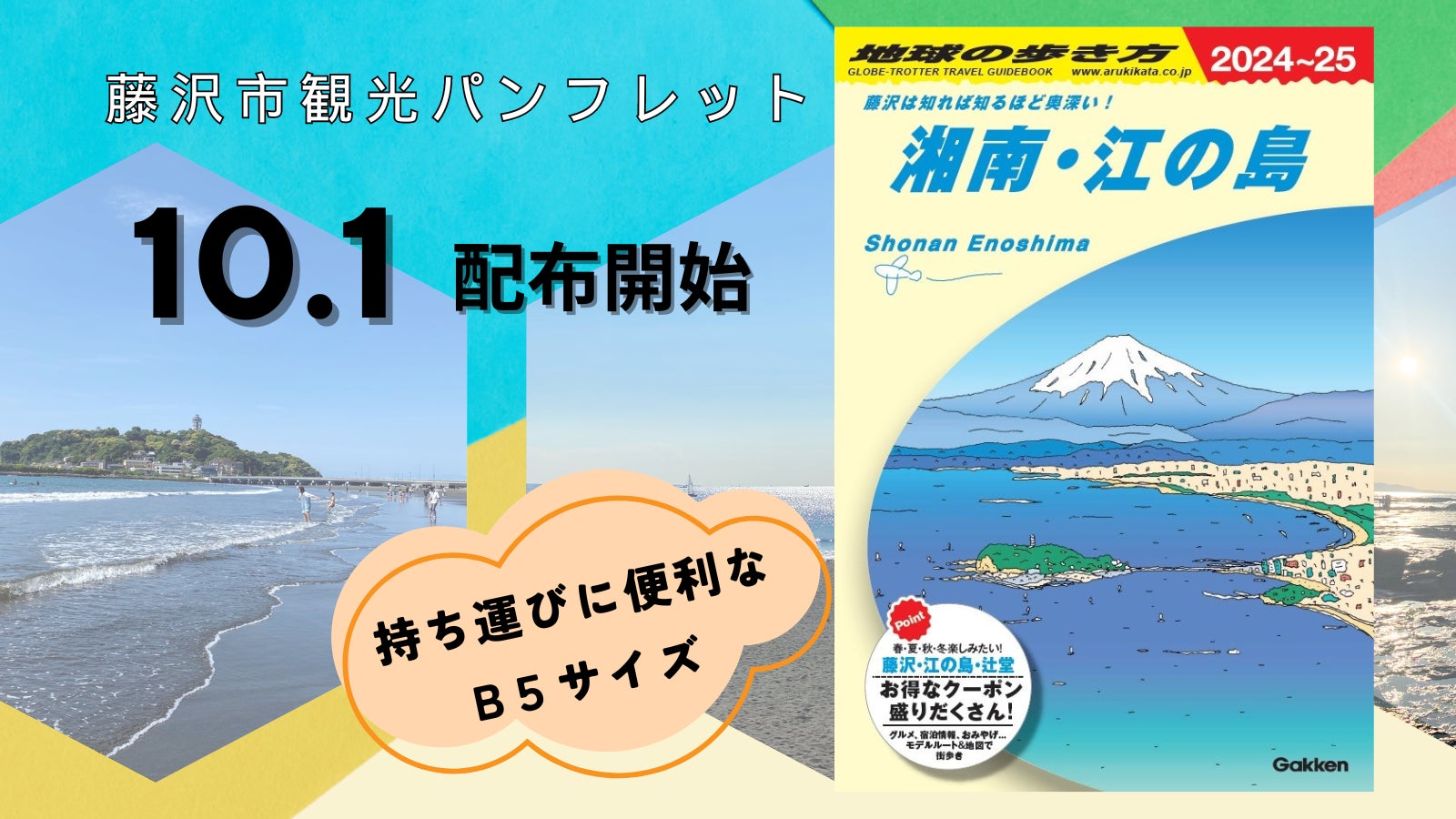 藤沢市の新たな魅力がたっぷりの観光パンフレット『地球の歩き方 湘南・江の島』を2024年10月1日(火)より配布開始。観光客はもちろん、地元“藤沢っ子”も読んで楽しい湘南の歩き方をチェック!