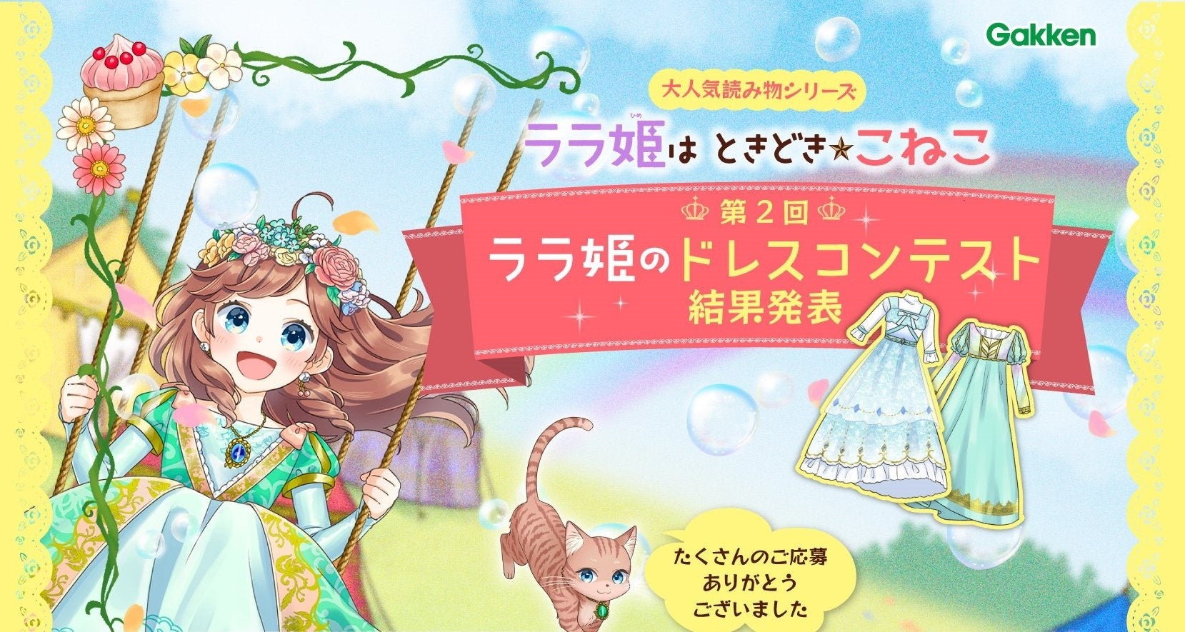 株式会社 学研ホールディングス(東京・品川/代表取締役社長:宮原博昭)のグループ会社、株式会社 Gakken(東京・品川/代表取締役社長:五郎丸 徹)が発刊する児童書『ララ姫はときどき☆こねこ』シリーズでは、「第2回ララ姫のドレスコンテスト」を開催。2024年9月25日(水)に最優秀賞・優秀賞を発表いたしました。