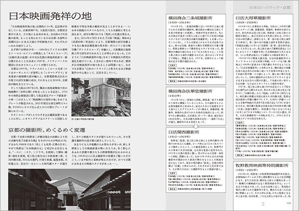 そして巻末には「日本のハリウッド・京都」と題した章を用意、1910年から現在に至るまでの撮影所の変遷をまとめて紹介しています。高鳥の著書・必殺シリーズ聞き書き四部作などでよく名前を見かけた小さな撮影所の来歴も詳らかになり、これは資料として貴重なものとなっています。
