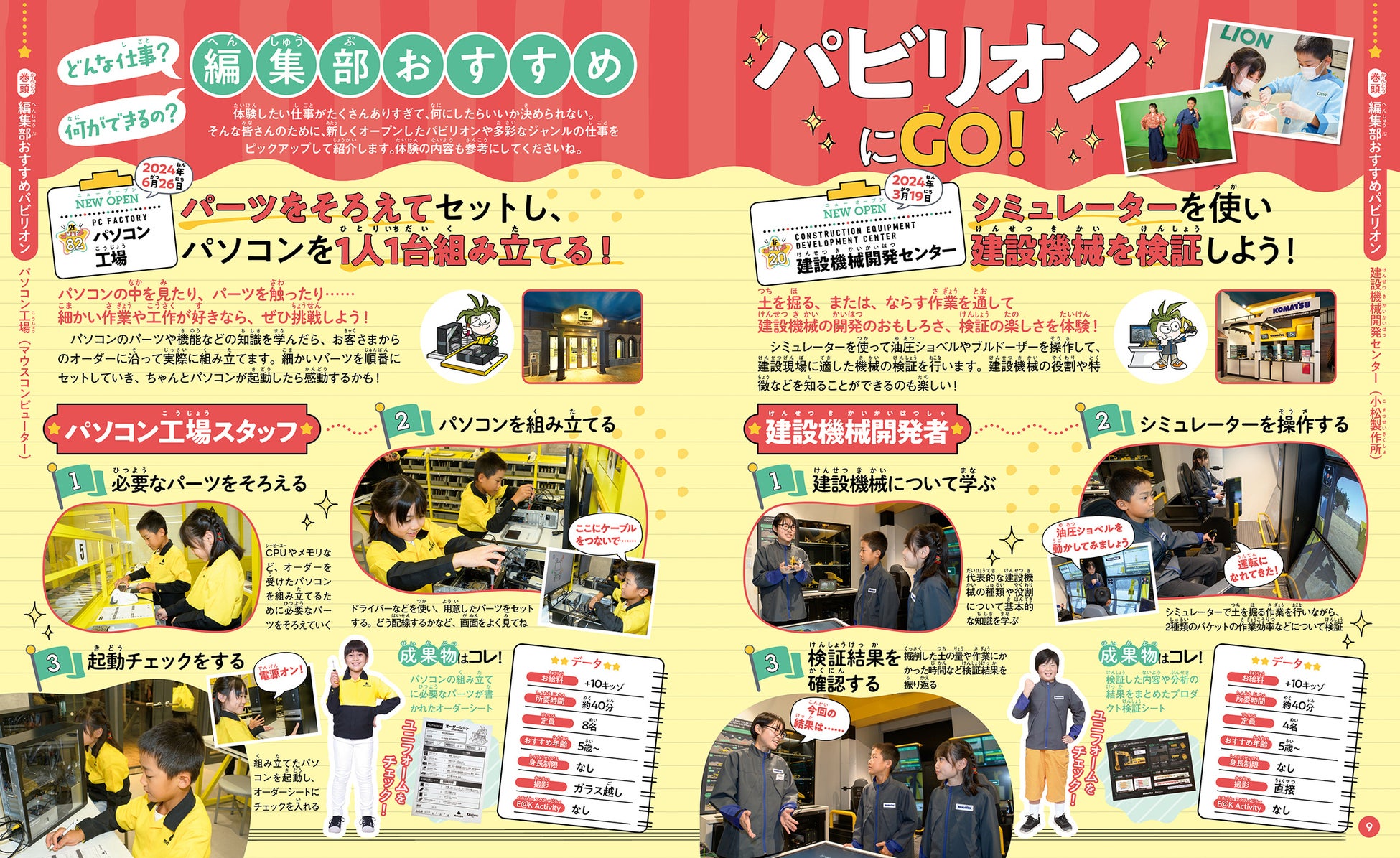 巻頭では、新しいパビリオンを中心に編集部のおすすめを6ページにわたって特集。はじめての方はもちろん、以前キッザニア東京を訪れた方にもチェックしてほしい情報です。
