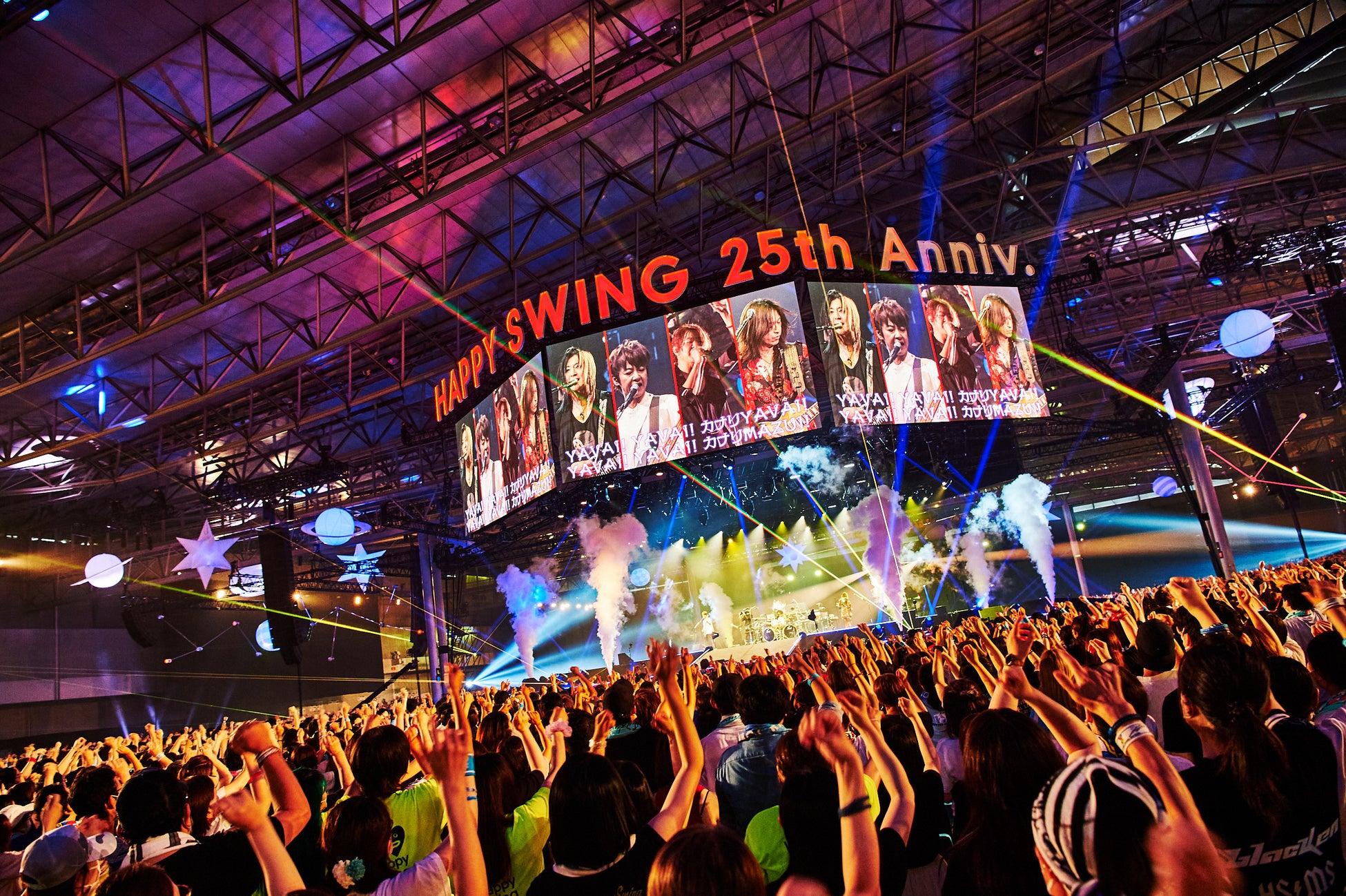 『HAPPY SWING』の発足記念ライブは今回が3回目。コロナ禍で1年延期になったが、今回は大阪と仙台そして幕張の3会場で、それぞれ2DAYSで開催。しかも、ちょうどこの日(7月31日)はGLAYが今から23年前、幕張メッセの駐車場に20万人という日本音楽史上最多の観客を集めて野外コンサートを行なった「GLAYの日」。幕張メッセでは2011年、2016年に次ぐ3度目の「GLAYの日」公演ということもあり、会場は開演前から静かな興奮で満たされていた。
