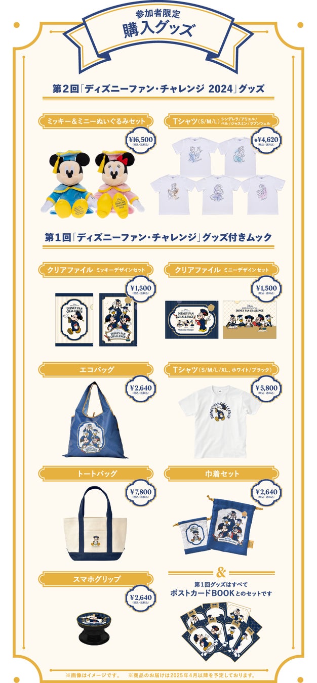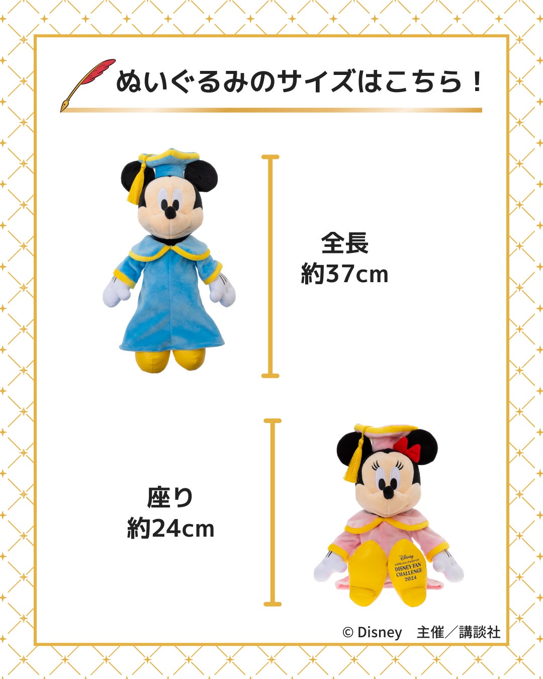 申し込みをすればクイズに参加できるだけでなく、参加者だけがオリジナルグッズを購入できるのも本イベントの大きな魅力。「ディズニーファン・チャレンジ」の限定デザイン、アカデミックガウン&タッセル付きハットを身に着けたミニー&ミニーのぬいぐるみは必見です。豪華BOX付きなので、ギフトにもおすすめ!