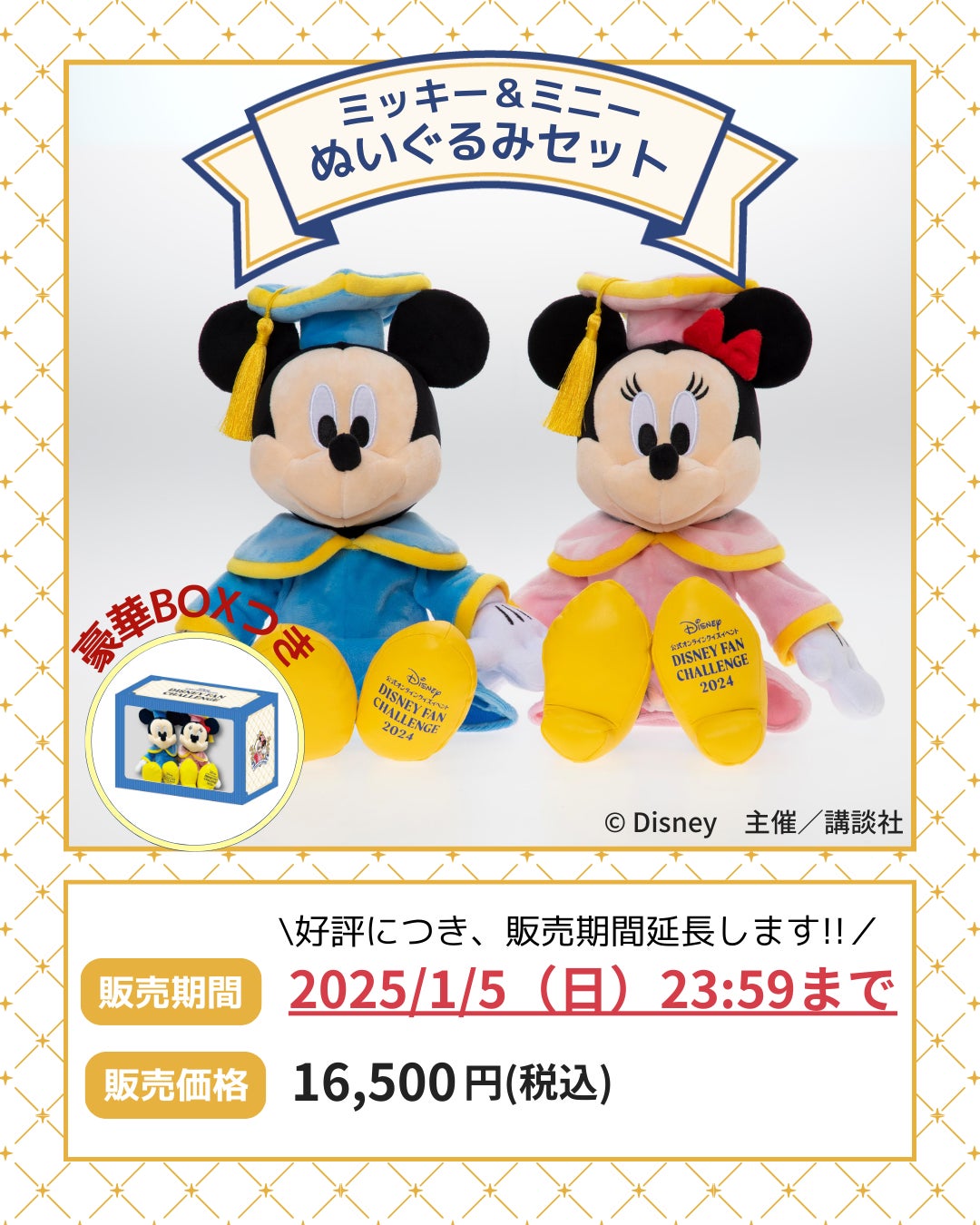 クイズ参加者のみが購入可能なミッキー&ミニーぬいぐるみセット(豪華BOX付き)は、好評につき2025年1月5日(日)23:59まで販売期間を延長!!