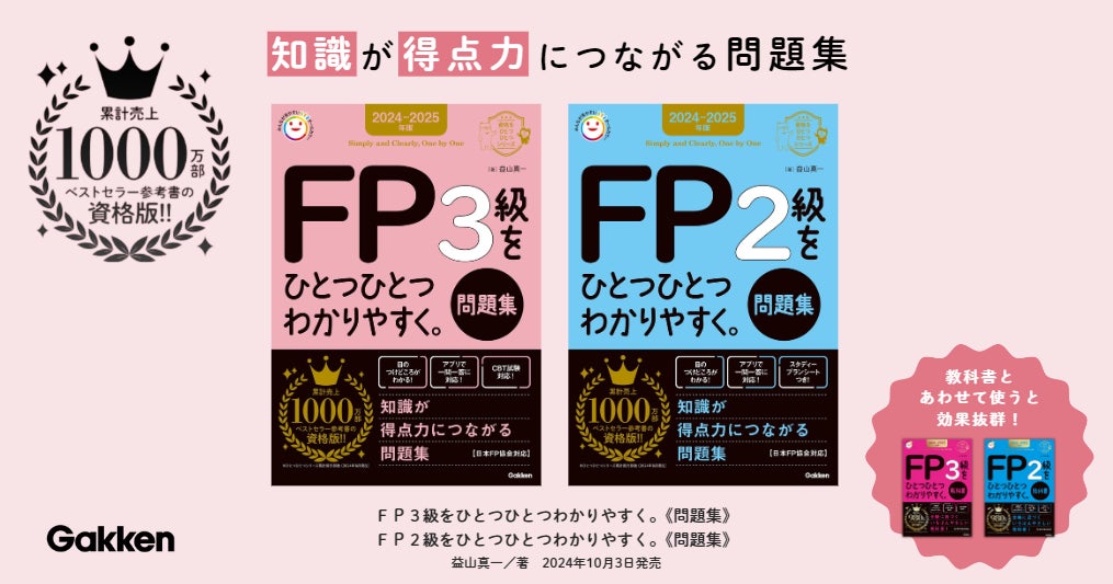 株式会社 学研ホールディングス(東京・品川/代表取締役社長:宮原博昭)のグループ会社、株式会社 Gakken(東京・品川/代表取締役社長:南條達也)は、2024年10月3日(木)に『2024-2025年版 FP3級をひとつひとつわかりやすく。《問題集》』、『2024-2025年版 FP2級をひとつひとつわかりやすく。《問題集》』を発売いたしました。