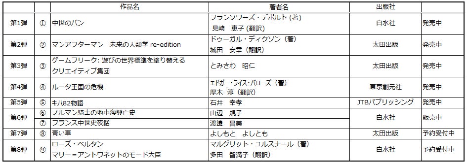 白水社復刊作品は「中世の旅 騎士と城」「中世の旅 都市と庶民」「中世の旅 農民戦争と傭兵」「鉄腕ゲッツ行状記」「中世のパン」「ノルマン騎士の地中海興亡史」「フランス中世史夜話」に、新たに本書「ローズ・ベルタン マリー=アントワネットのモード大臣」を加えた7作品を復刊させ、現在までに累計33,000冊以上を販売する事ができました。