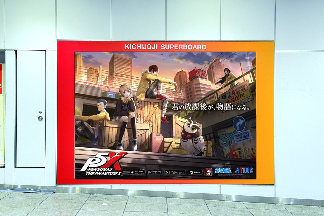 Ver.2.0でプレイアブルとなった新キャラクター・多祢村理子をはじめとした『P5X』の怪盗団メンバーの美麗イラストが、京王井の頭線 吉祥寺駅に大型広告として掲出されています。お近くにお越しの際にはぜひご確認ください!