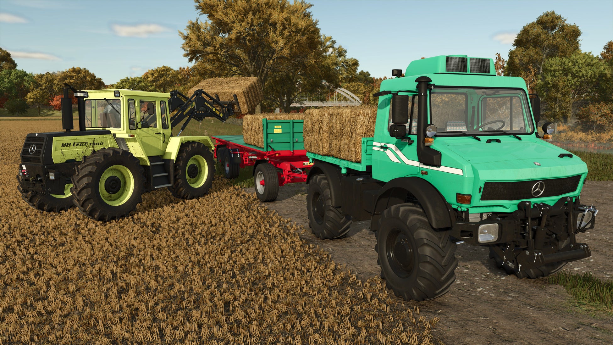 「Mercedes-Benz Trucks Pack」には、ドイツを拠点とする世界的な自動車メーカーMercedes-Benzをはじめ、農業機械メーカーのFliegl、Heizomat、Sirch、Stollの計5社のブランドから、計17台の農機/車両が登場いたします。また、新たにタイヤブランドのAllianceも収録予定です。中でも注目の「Unimog(ウニモグ)」は、Mercedes-Benzによる多目的作業車となり、1台で何通りもの作業に対応しています。