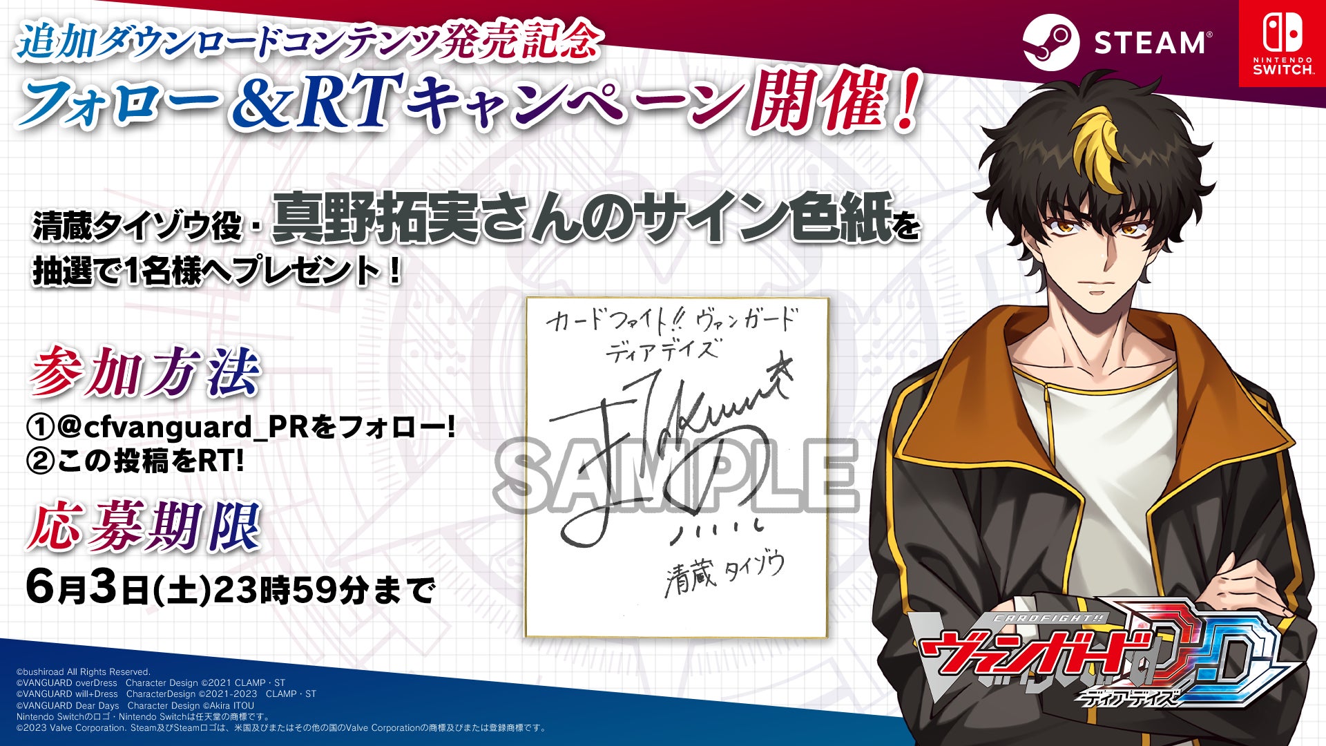 株式会社ブシロード(本社:東京都中野区、代表取締役社長:木谷高明、以下ブシロード)は、Nintendo Switch™ / Steam🄬向け、対戦カードゲーム『カードファイト!! ヴァンガード ディアデイズ』より追加ダウンロードコンテンツ第3弾が発売された事をお知らせいたします。