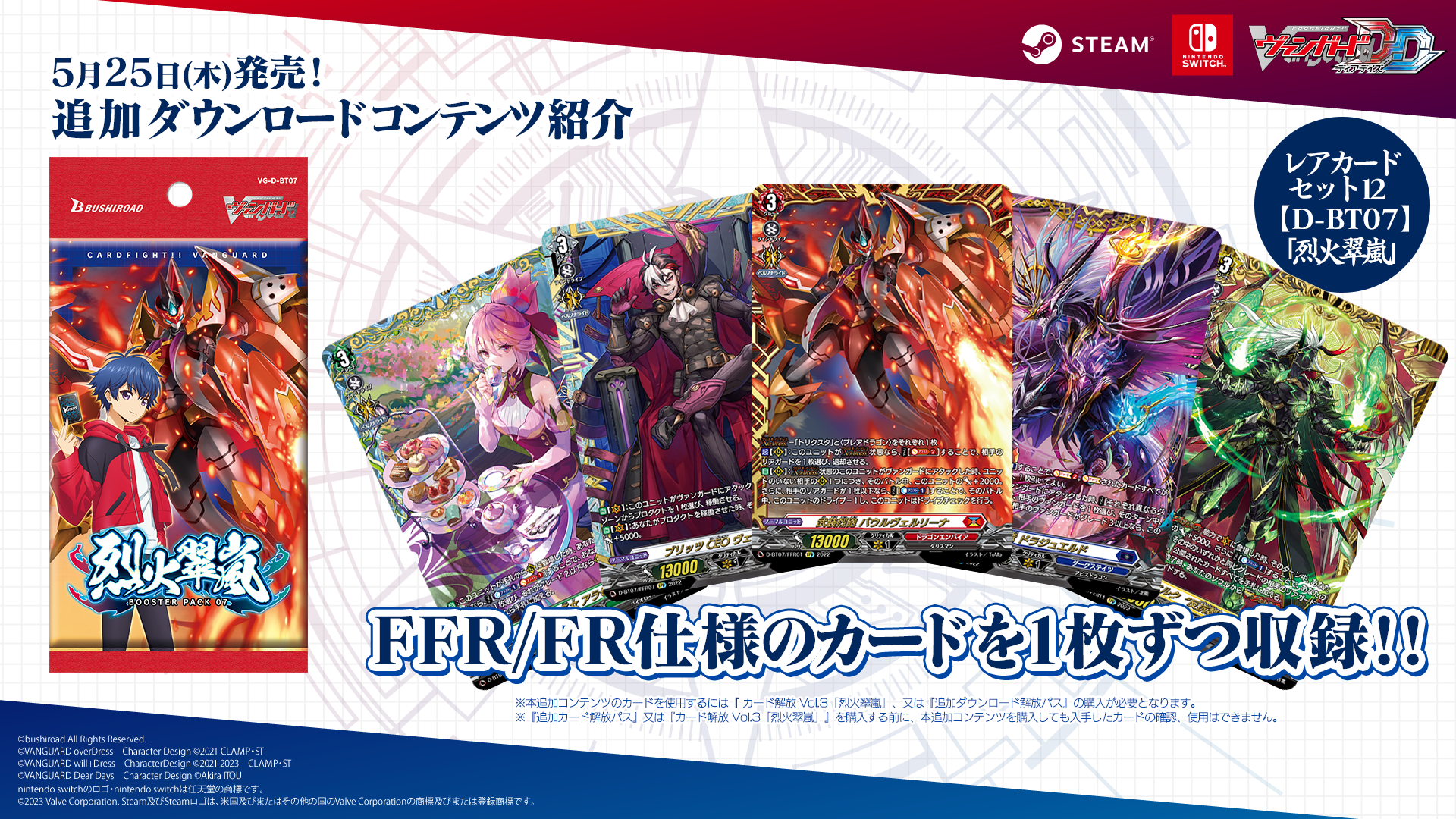 ※本追加コンテンツのカードを使用するには「追加カード解放パス」又は『カード解放Vol.3【D-BT07】「烈火翠嵐」』を購入している必要があります。