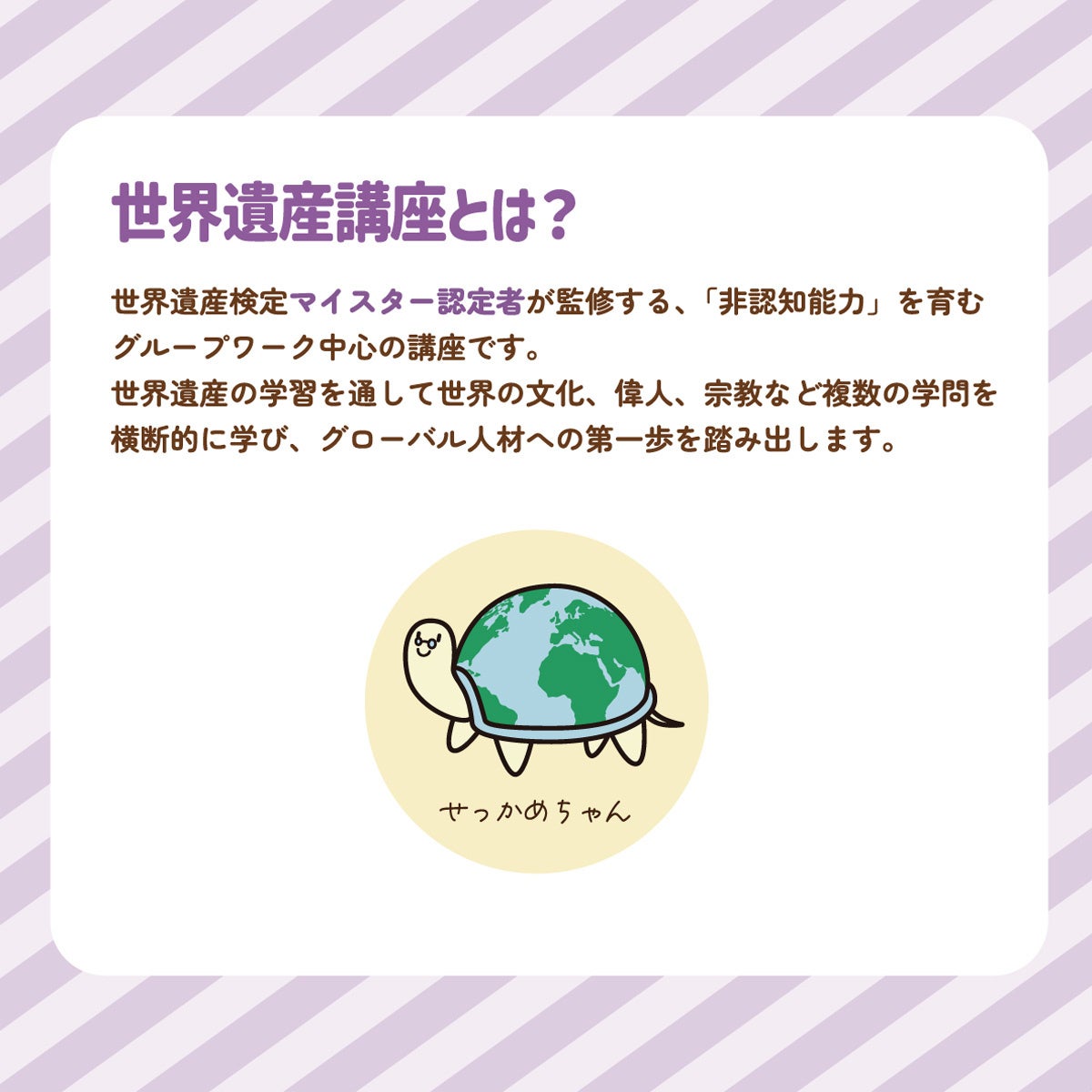 ますます進展するグローバル社会において、子ども達が大きく羽ばたけるよう、2年の期間をかけて準備をしてきた「グローバル教養が身につく 世界遺産講座」の2期生受講者募集を現在行っております。