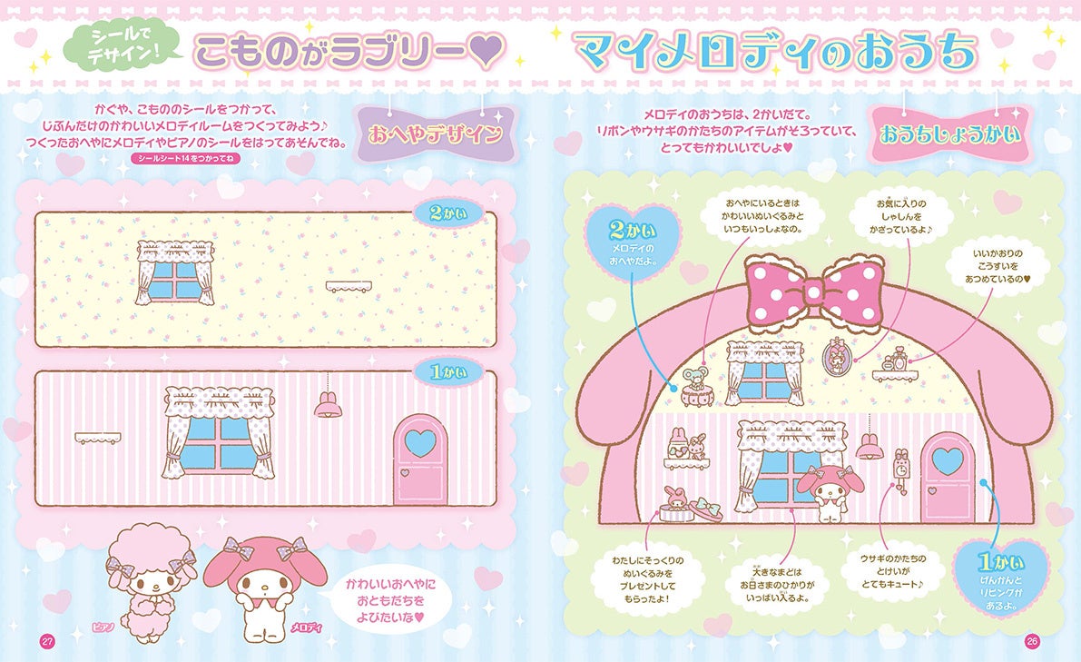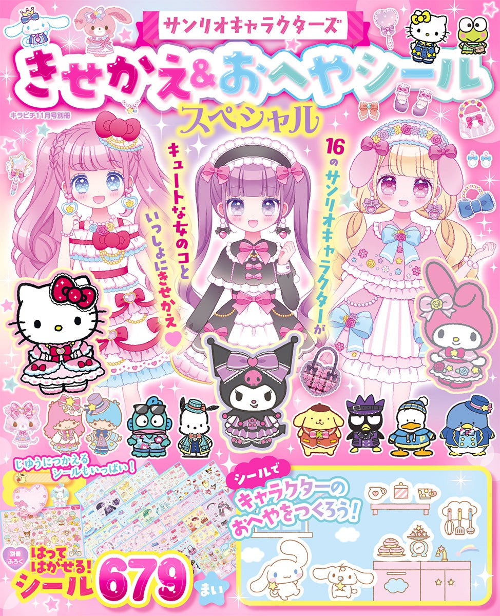 ハローキティやマイメロディなど16のサンリオキャラクターやキュートな女のコたちと、シールを使ってきせかえやおへやのコーディネート遊びが楽しめる雑誌です。