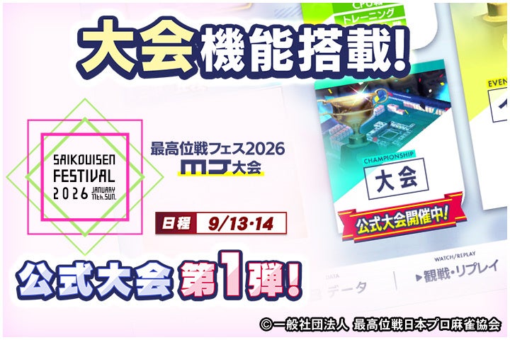 株式会社セガは、ネットワーク対戦麻雀ゲーム『セガNET麻雀 MJ』について、最高位戦日本プロ麻雀協会によるファン参加型イベント「最高位戦フェス2026 supported by セガNET麻雀 MJ」の開催を記念した「最高位戦フェス2026MJ大会」を、9月13日(土)より開催します。