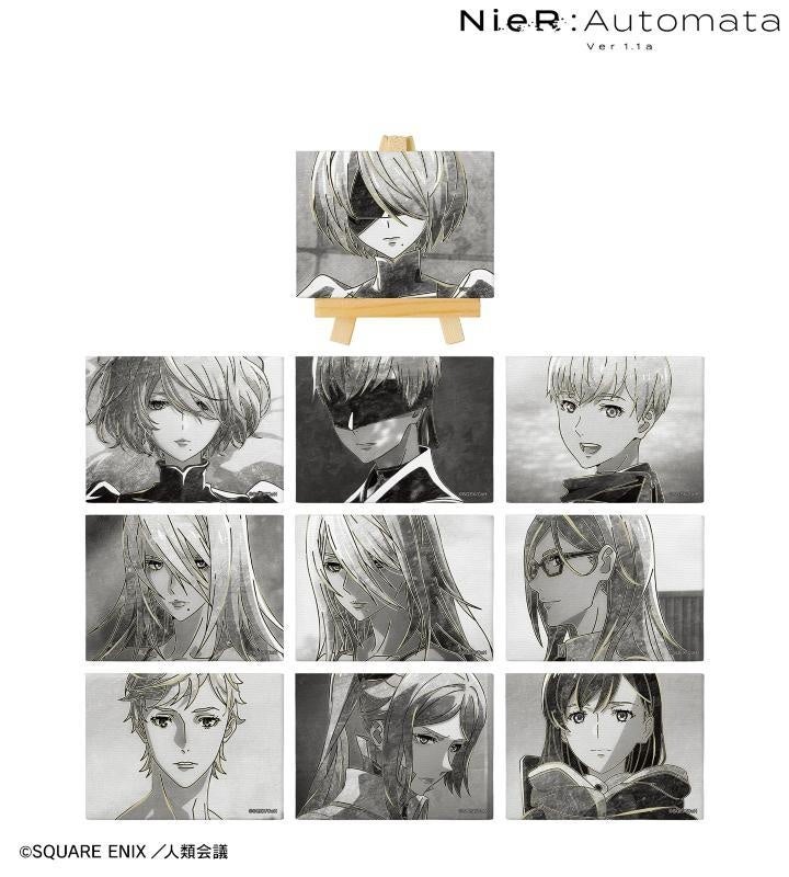 2B、9S、A2、アダム、イヴ、司令官、リリィのイラストを新たなタッチで魅力的に表現し、ミニキャンバスボードに仕上げました。