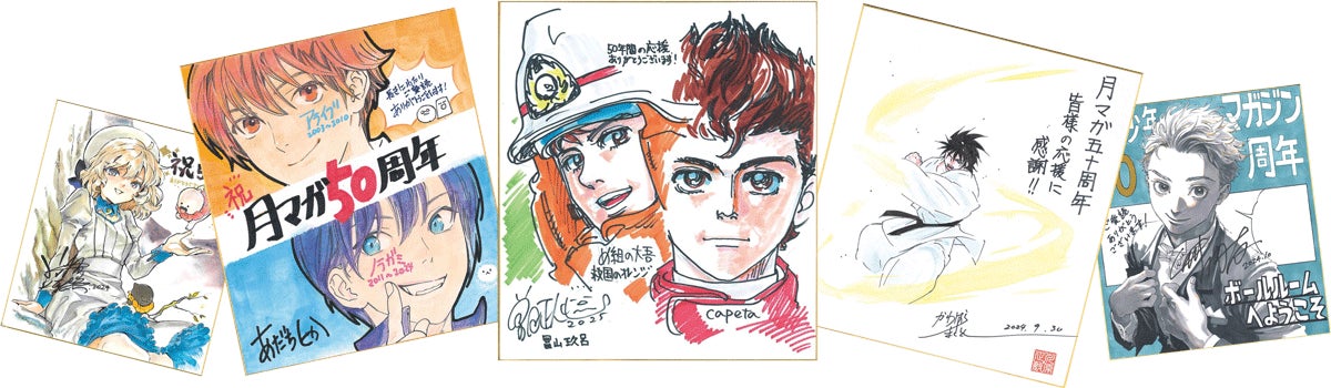 44名の作家陣が月マガ50周年のために描き下ろした貴重なサイン色紙を、各1名様合計44名様へプレゼントいたします!(応募方法は2025年1月号をご覧ください)
