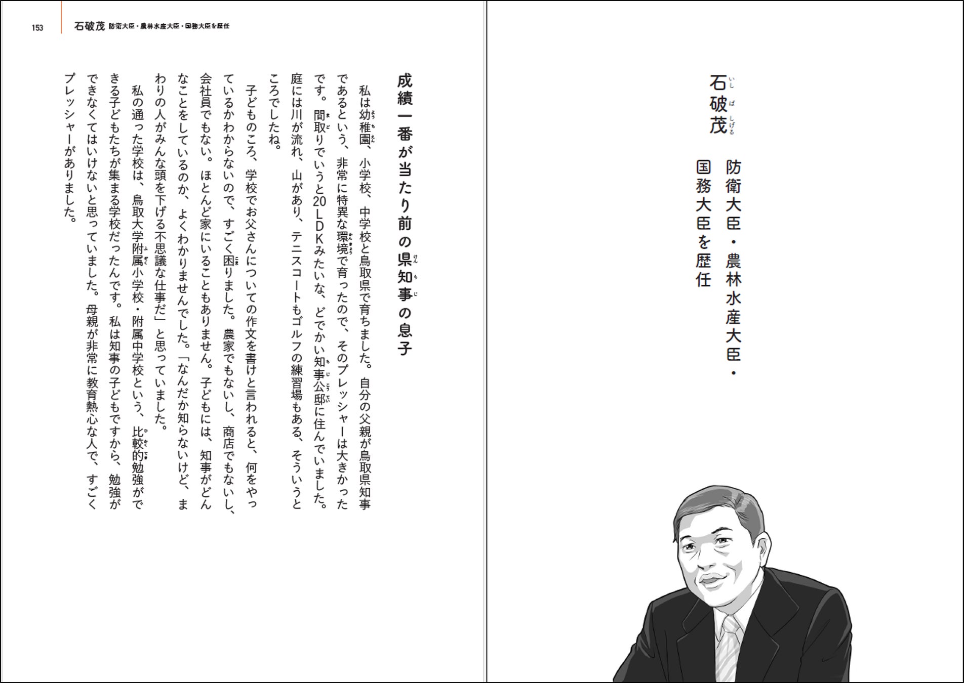 この本の中心になるのは、実際の総理大臣経験者や、現役の政治家の方々へのインタビューページです。細川護熙氏、村山富市氏、小泉純一郎氏といった総理大臣経験者、枝野幸男氏、城内実氏といった現役の政治家、そしてなんと、総理大臣になる前の石破茂氏にもインタビューを行っています。子どもの頃のエピソードから政治に対する考えまで、たっぷり読むことができます。