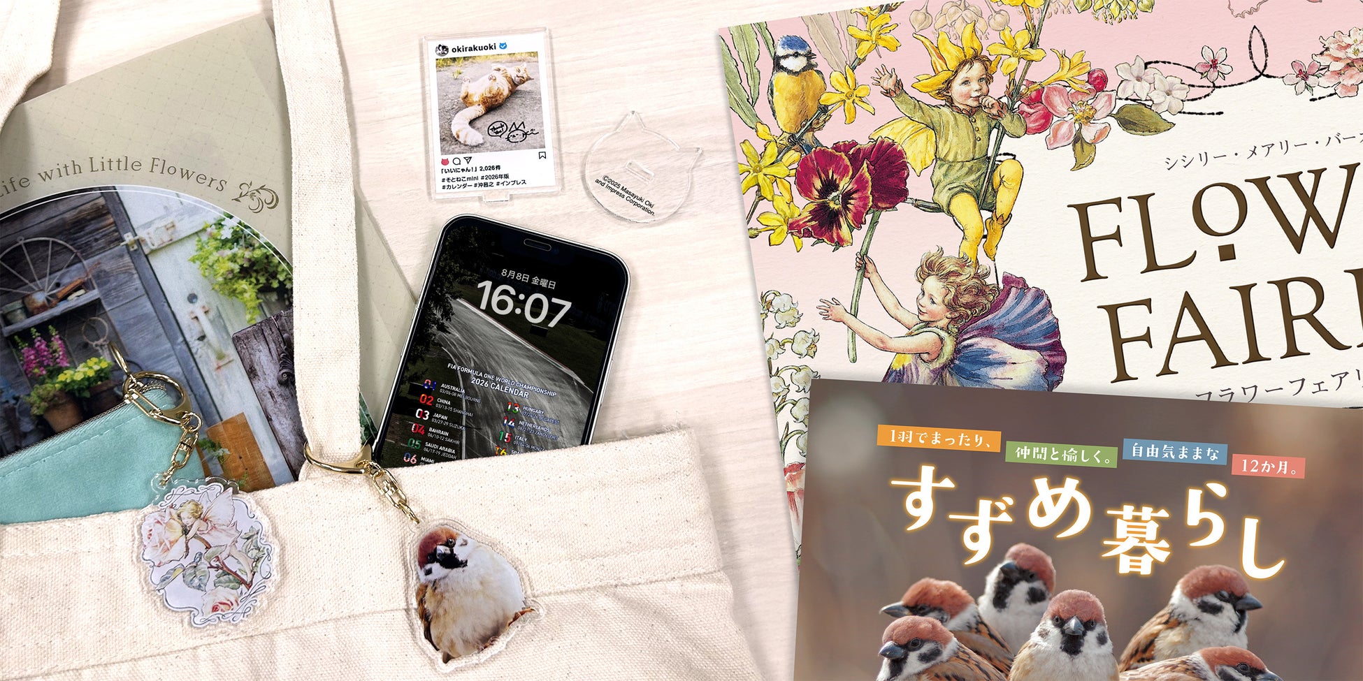 2026年版では、復刊を望むユーザーの声に応え『FLOWER FAIRIES Calendar』が再登場。フェアリーや花のイラストをコラージュしたおしゃれなデザインはそのままに、巻末付録が変更されるなどさらにパワーアップして帰ってきました。新商品では、シンガーソングライターで神社ソムリエとしても活動する佐々木優太氏監修の、美しい神社の風景を集めた『幸せ結ぶ美しき風景 佐々木優太の開運神社』や、動物が見せる愛くるしい姿がたまらない『森の妖精 モモンガ CALENDAR 2026』『山の妖精 オコジョ CALENDAR 2026』『ふわもふレッサーパンダCALENDAR』が登場。類似商品が少なく、それぞれの動物のファンにとって待望の商品です。さらに、限定特典が付属する、Amazon限定特別版5商品、ヨドバシカメラ限定 フォトパネル付きプレミアム版2商品を発売いたします。