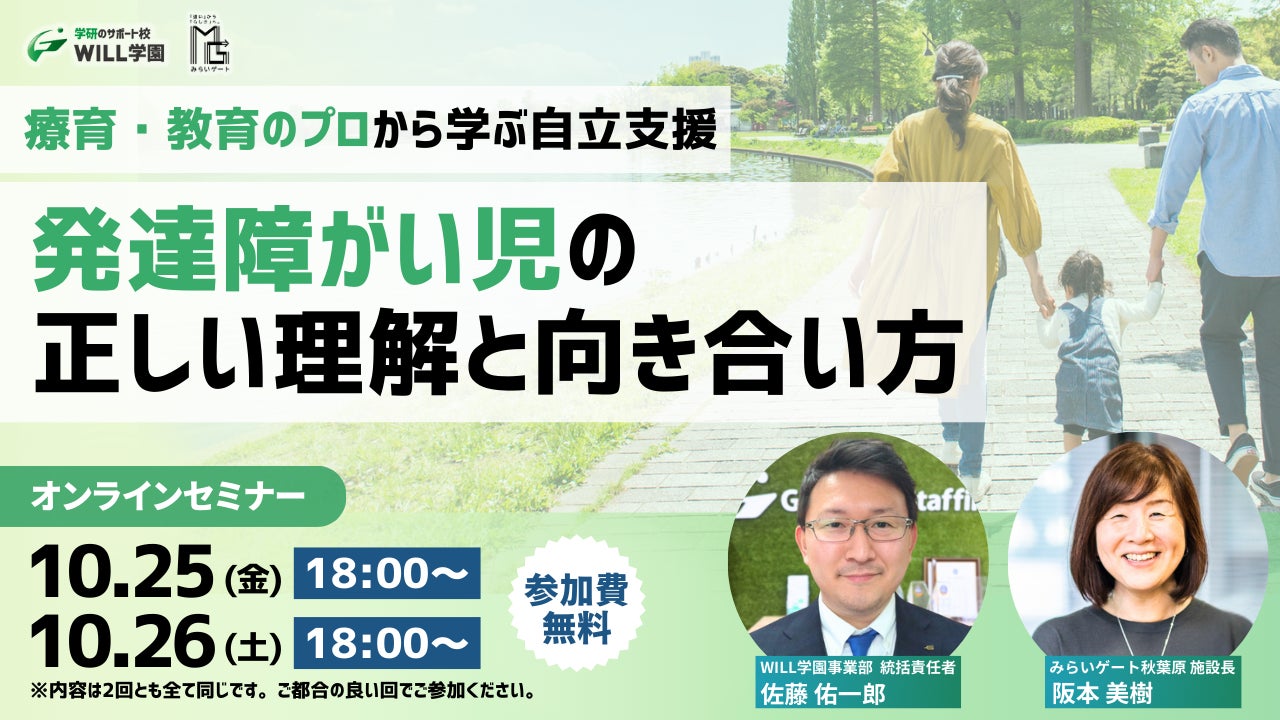 【10月25日(金)、10月26日(土)】無料オンラインセミナー「発達障がい児の正しい理解と向き合い方~療育・教育のプロから学ぶ自立支援~」を2社共同で開催いたします!