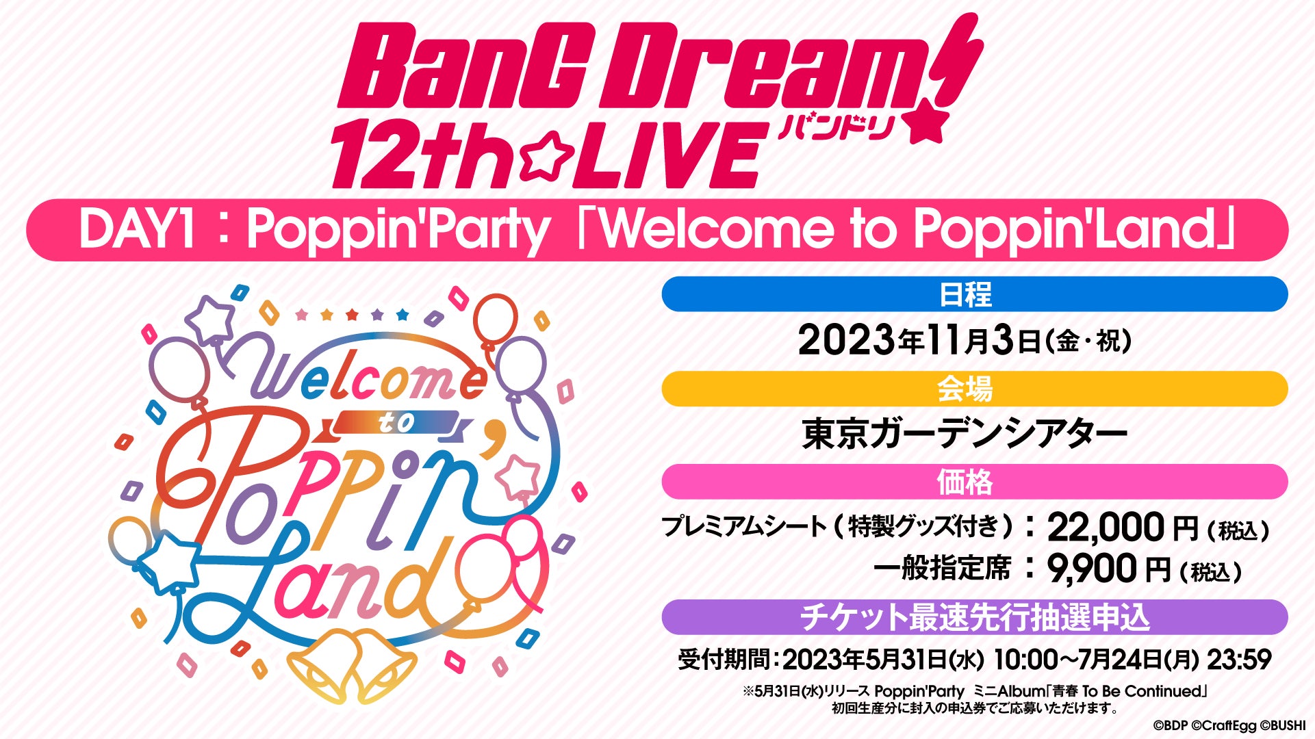 ・BanG Dream! 12th☆LIVE DAY1 : Poppin'Party「Welcome to Poppin'Land」 最速先行抽選申込券