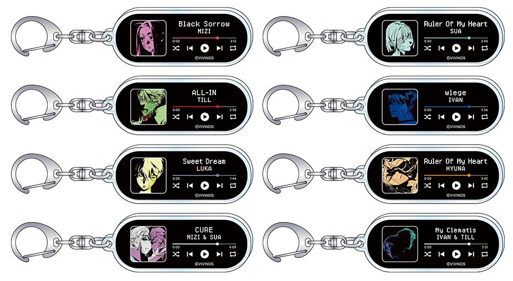そんな『ALIEN STAGE』より、個性豊かなキャラクターたちのパフォーマンスシーンを切り取った、描き下ろしイラスト使用の新作グッズが登場!メインキャラクターであるMIZI、SUA、TILL、IVAN、LUKA、HYUNAたち6人の「アクリルスタンド」や、ステージ上とはまた違った姿が見られる「ポスター」、音楽プレイヤー風のデザインがオシャレな「アクリルキーホルダー」などの新作グッズを多数発売いたします。