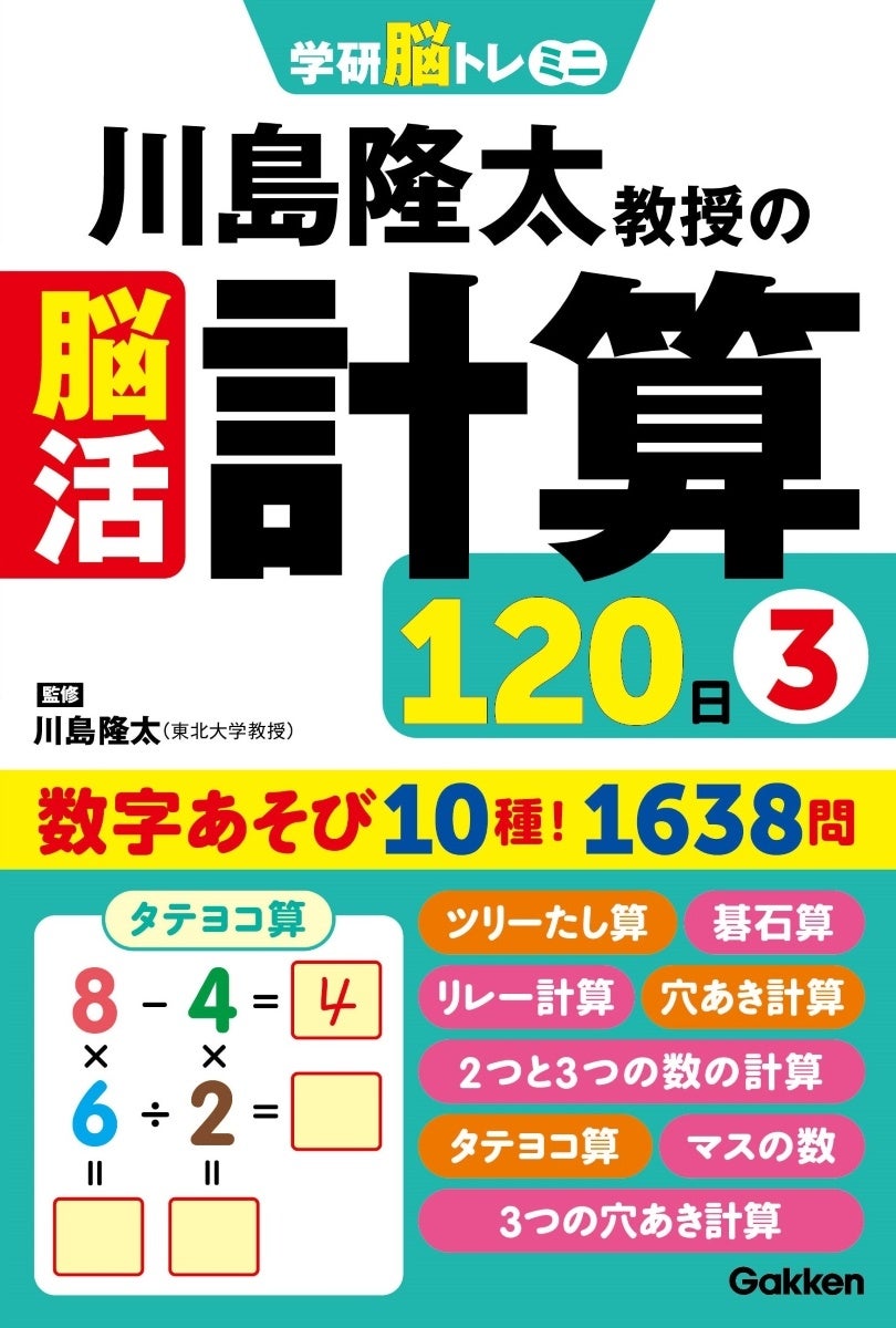 このたび発売する2冊は、脳トレの第一人者【川島隆太教授】が監修する、脳を刺激する「学研脳トレミニ」シリーズの新刊です。「脳活計算120日」「脳活漢字120日」ともに2冊ずつ刊行しており、今回の発売の2冊を加えて全6巻となります。