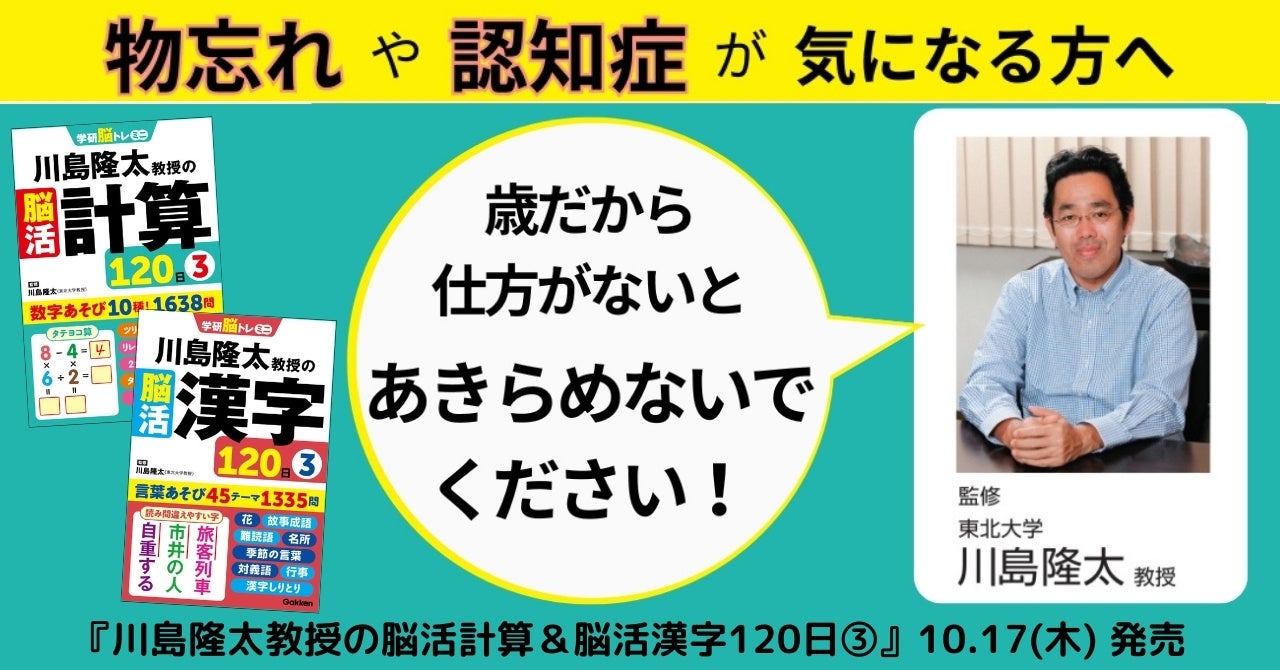 【物忘れや認知症が気になる方へ】脳活チャレンジ120日! 脳は何歳からでも若返る! 脳トレ習慣を支える『川島隆太教授の脳活計算&脳活漢字120日』発売